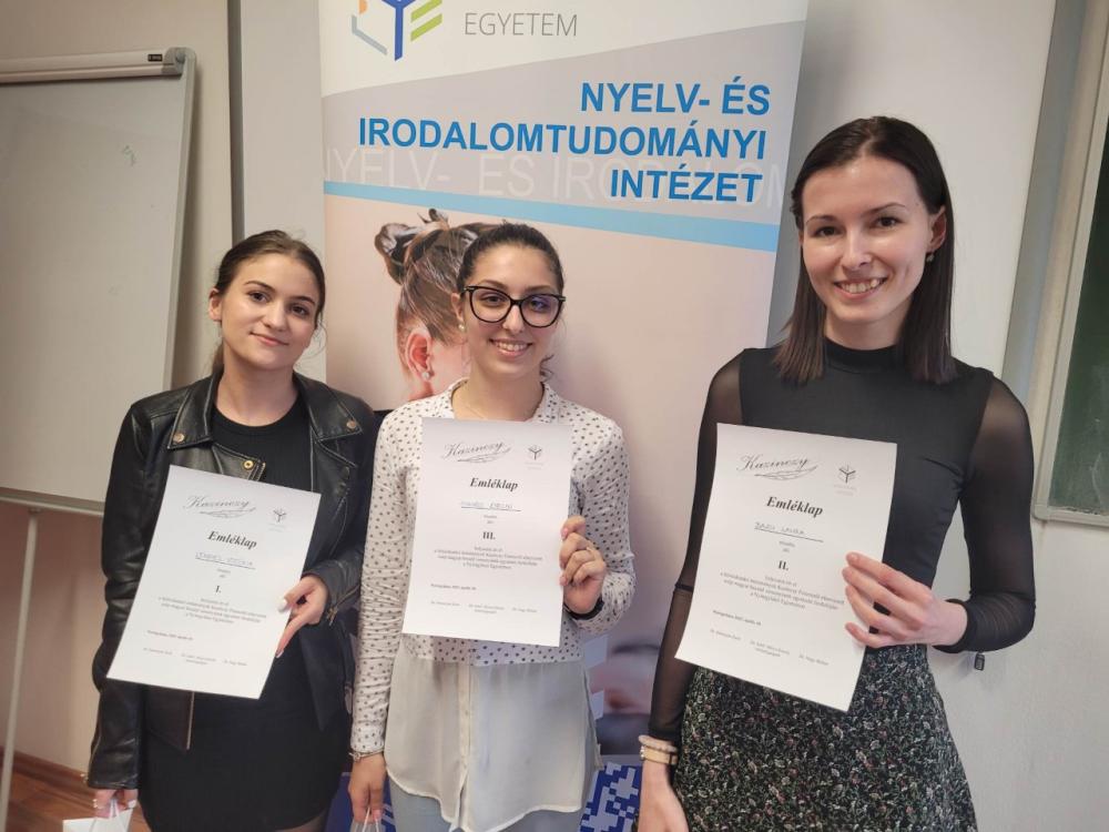 A megmérettetésen első helyezést ért el Lengyel Viktória I. évfolyamos tanító szakos hallgató. Második Baku Laura harmadéves magyar szakos hallgató, míg a verseny harmadik helyezettje Horváth Evelin elsőéves tanító szakos hallgató lett. A versenyszabályzat alapján ők hárman képviselik a Nyíregyházi Egyetemet a május 12-én Esztergomban, a Pázmány Péter Katolikus Egyetem Bölcsészet- és Társadalomtudományi Karán megrendezendő országos döntőn.