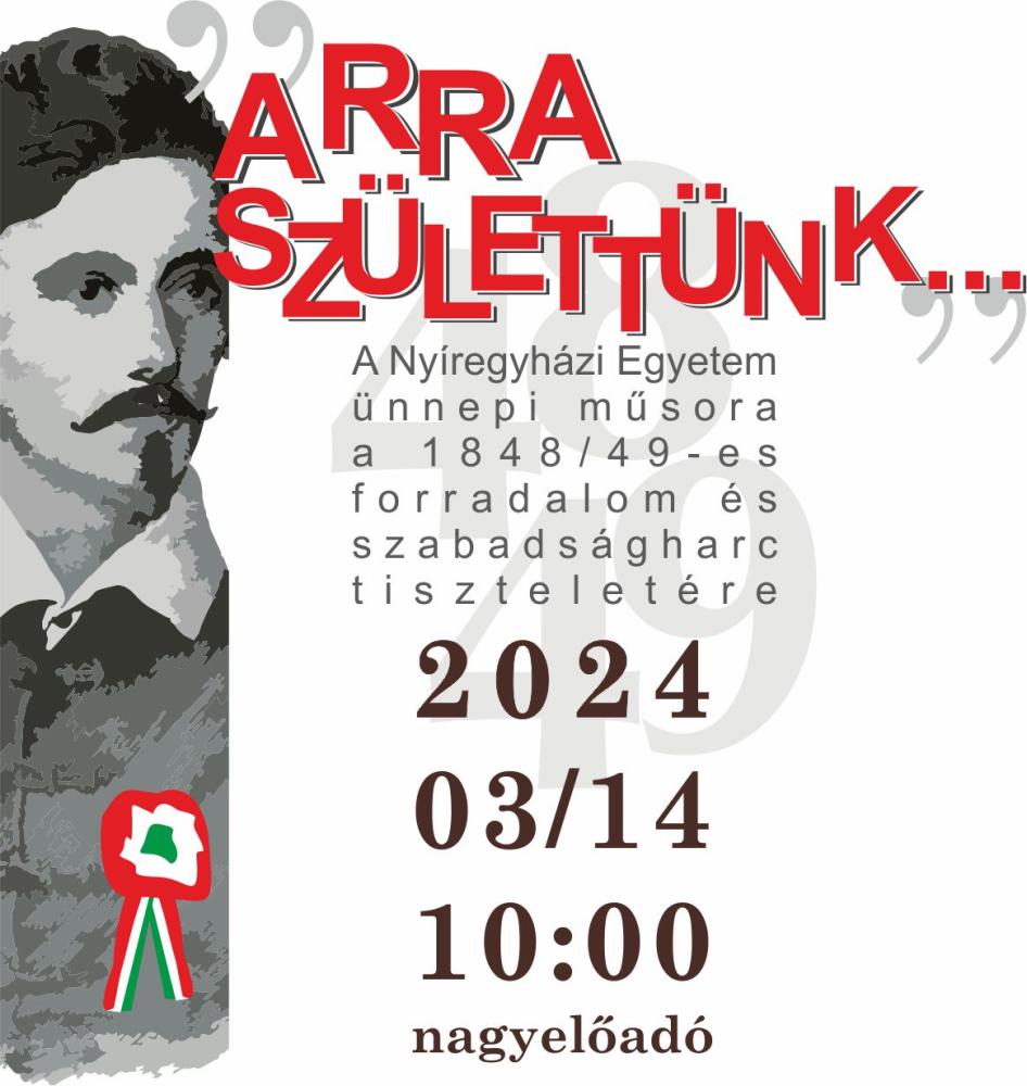 A Nyíregyházi Egyetem vezetősége tisztelettel meghívja az Egyetem Polgárait az 1848/49-es