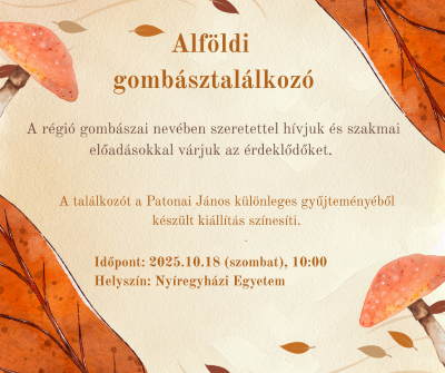 Szeretettel várunk minden érdeklődőt az Alföldi gombásztalálkozó című rendezvényre.