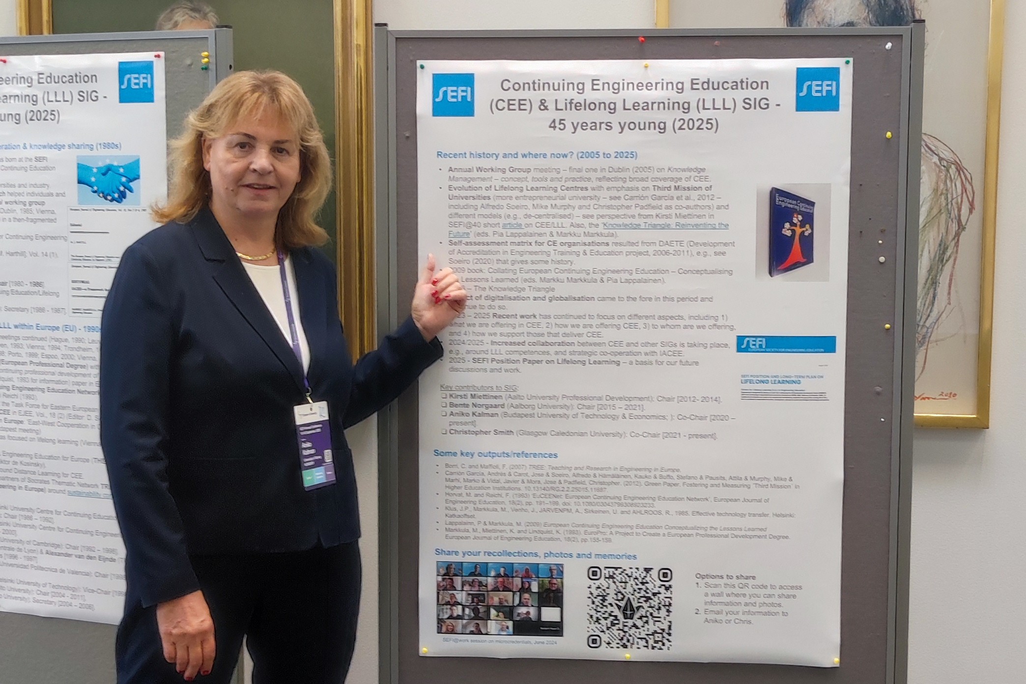 Dr. Kálmán Anikó a konferencián szekcióelnökként és előadóként vett részt a „Meeting Continuing Engineering Education and Lifelong Learning” című szekcióban, továbbá közreműködött a CEE Workshop megszervezésében és a SEFI Lifelong Learning szakmai állásfoglalásának összeállításában, amely a szervezet hivatalos kiadványaként jelent meg.