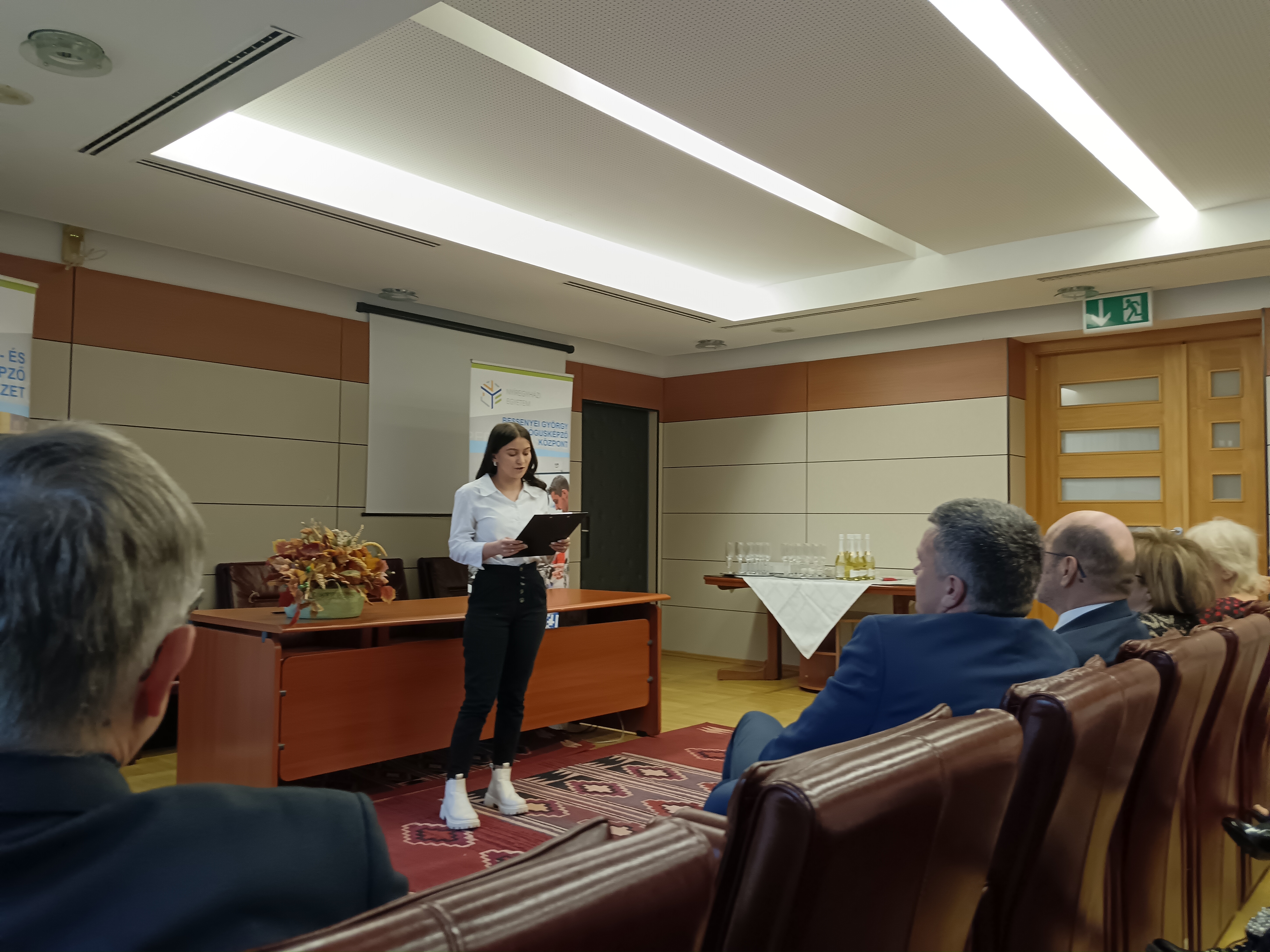 Ezt követően Rektor úr mondott köszönetet az intézmény érdekében végzett áldozatos tevékenységéért, majd Dr. Nagy Balázs laudációját hallgathatta meg a résztvevő közönség. Az ünnepség zárásaként Dobos Zoltánné rövid, személyes hangvételű köszönetet mondott.