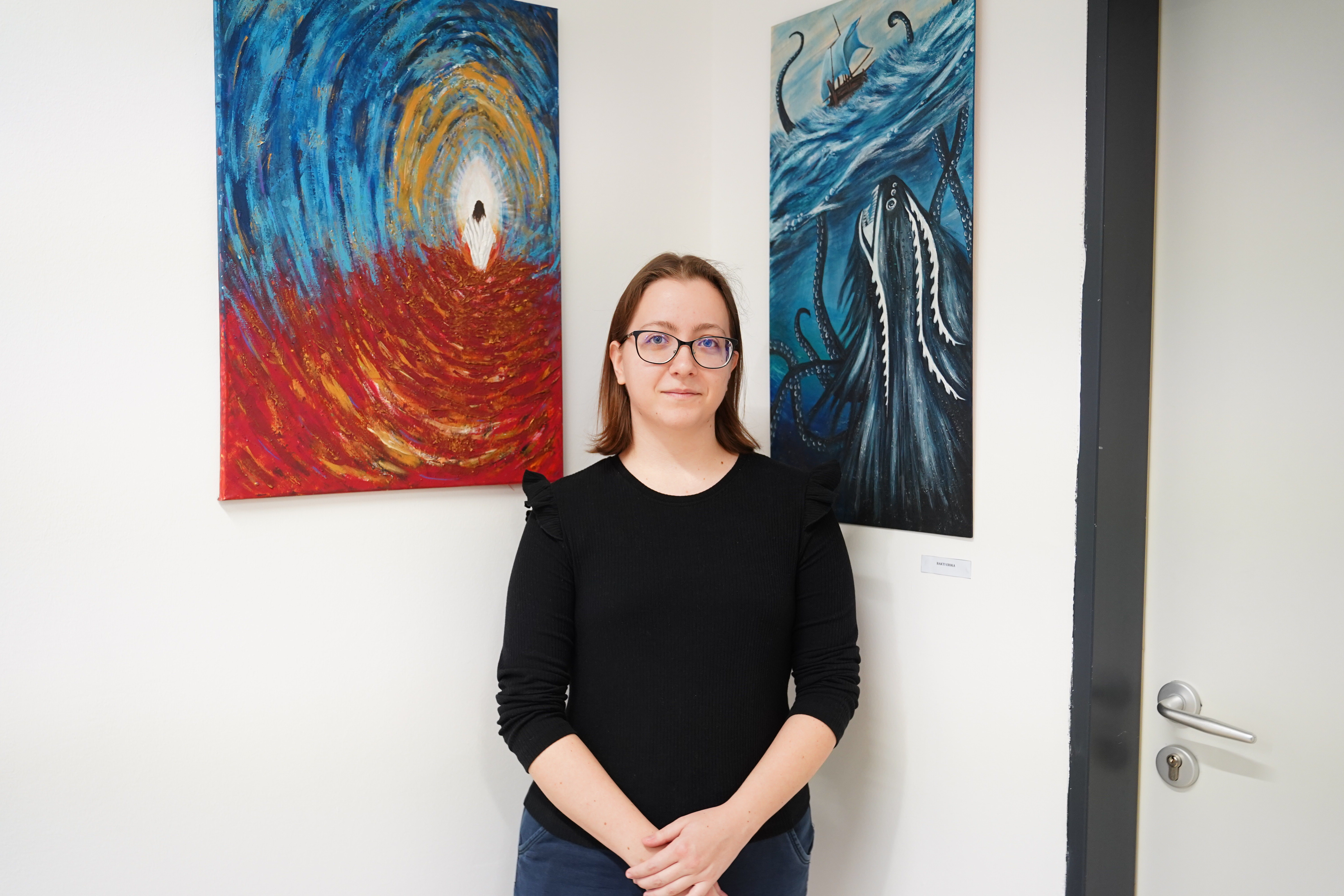 Bakti Erika, harmadéves angol–vizuális kultúra tanárszakos hallgató számára a festészet felfedezés. „A kék színek, a tenger és az óceán megnyugtatnak. Festés közben ki tudok kapcsolni, elveszni az alkotásban” - mondta a hallgató.