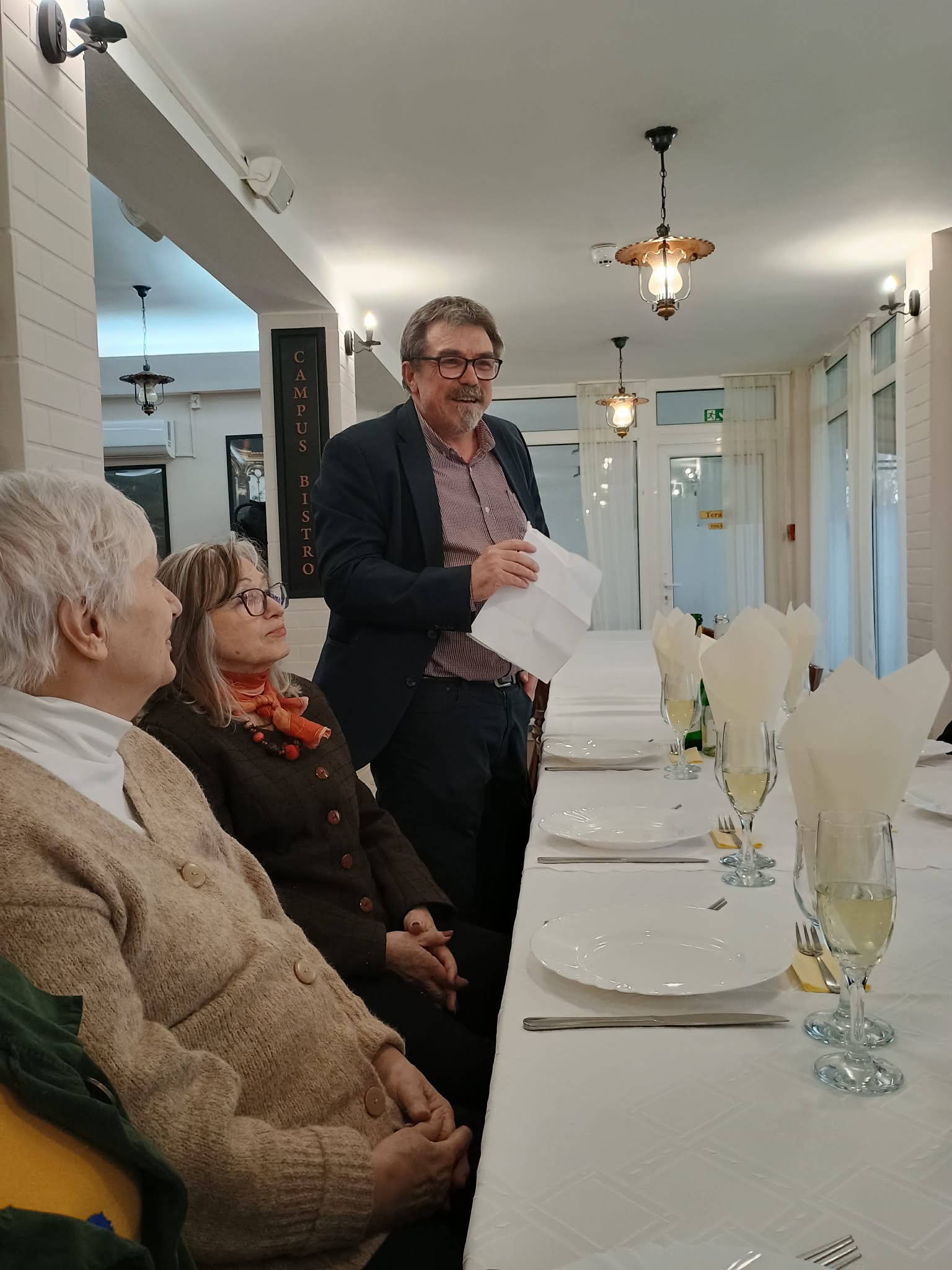 Kollégái köszöntötték Karádi Zsoltot 70. születésnapja alkalmából. Először Jánosi Zoltán olvasta fel A vállakra emelt torony című esszéjét, amely a Magyar Napló 2026. januári számában jelent meg, majd Antal Balázs derűs, ütemhangsúlyos verse következett Karádi Zsolt hetvenkedésére címmel, végül Minya Károly köszöntötte az intézet kiemelkedő oktatóját. Végül maga az ünnepelt olvasta fel „önmegszólító”, Születésnapomra… című időmértékes versét.