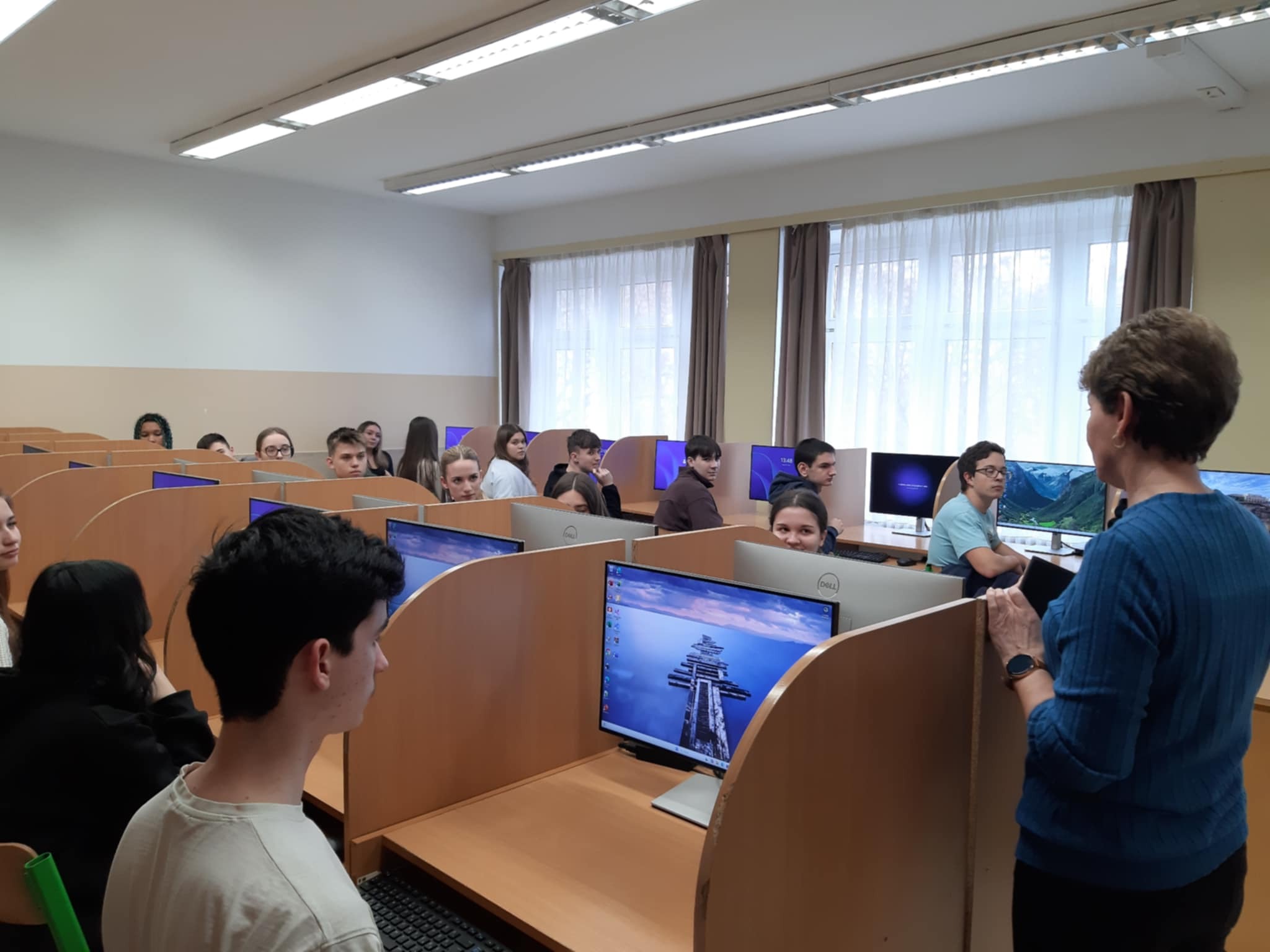 Vendégük az intézményvezetővel és a franciatanárokkal is találkozott, valamint sok sikert kívánt a versenyen részt vevő diákoknak. A feladatok megoldására 45 perc állt a versenyzők rendelkezésére. A beküldést követően a diákok azonnal visszajelzést kaptak eredményükről, és megtudhatták, hogy az elérhető 50 pontból hány pontot szereztek. Az első forduló eredményei alapján a 7–8. évfolyamos tanulók közül az 1–6. helyezetteket díjazzák. A 9–10. évfolyamos versenyzők közül kategóriánként 20–40 tanuló jut tovább a második fordulóba, a nevezők létszámától függően: