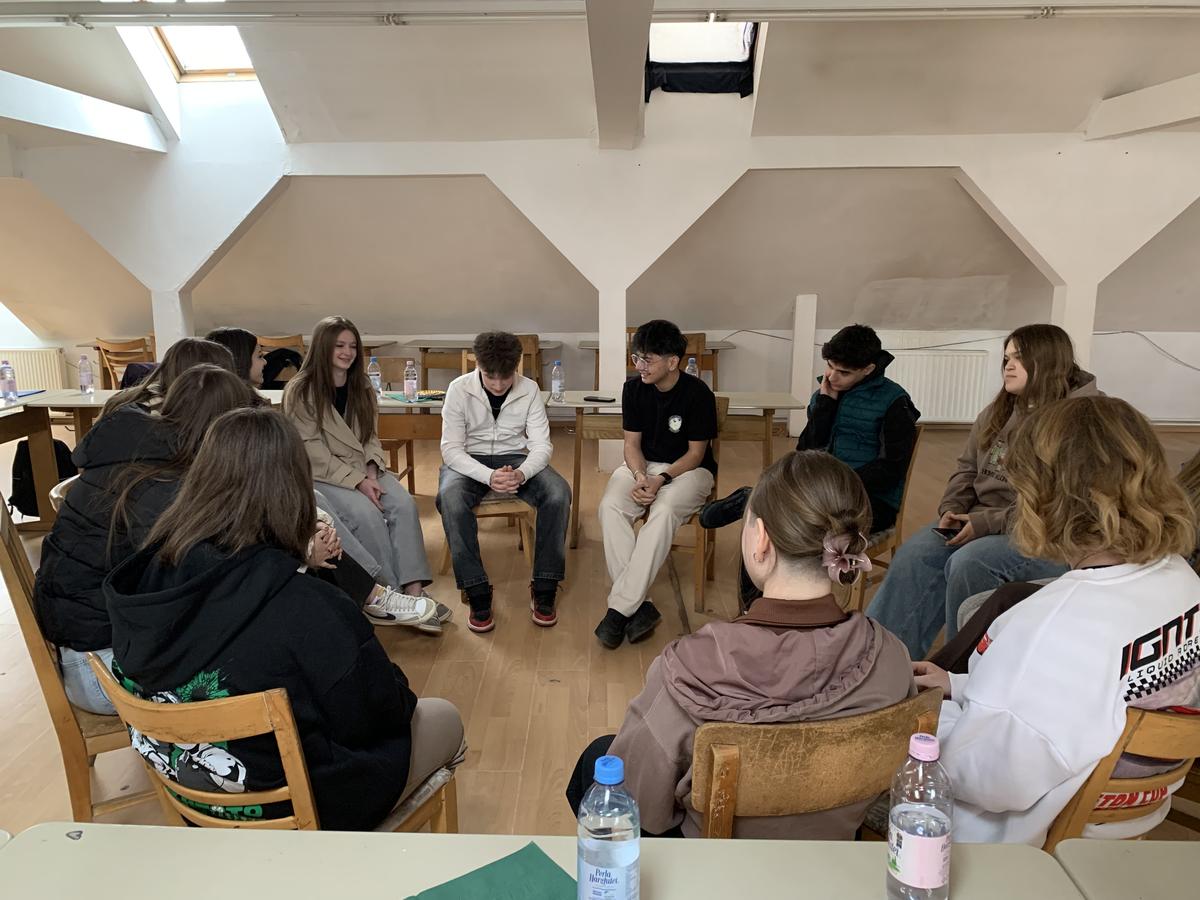 11. fotó: A két középiskola diákönkormányzati képviselőinek az együttműködésüket és a közösen szervezendő programjaikat tervező beszélgetése