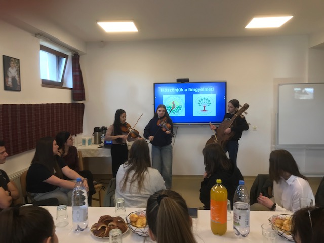 A vendéglátók egy fantasztikus népzenei előadással is kedveskedtek nekünk, ami megalapozta a jó hangulatot a délután további részére. Az előadást követően a diákoknak lehetőségük nyílt a fesztelenebb, kötetlen ismerkedésre is. Örömmel tapasztaltuk, hogy a fiatalok milyen természetességgel hidalják át a távolságokat: azonnal élni kezdtek a modern online platformok (Facebook, Instagram, TikTok) adta lehetőségekkel, hogy a jövőben is tartsák egymással a kapcsolatot.