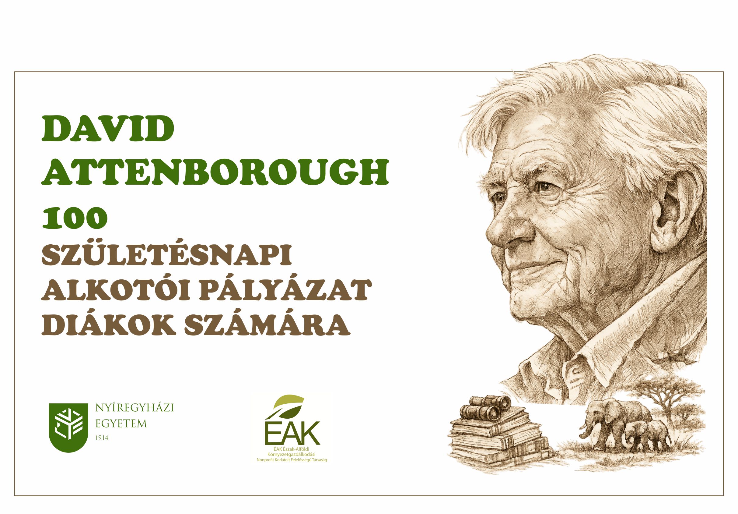 A Nyíregyházi Egyetem Fenntarthatósági Munkacsoportja, Környezet- és Természettudományi Intézete és az ÉAK Nonprofit Kft. alkotói pályázatot hirdet diákok számára „David Attenborough 100 – születésnapi alkotói pályázat” címmel.