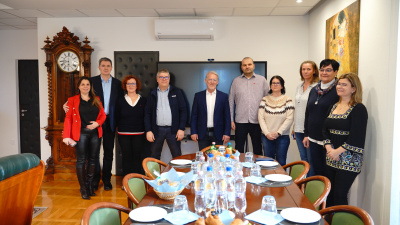 Terített asztal várta a Reggeli Start résztvevőit Dr. Hárskuti János, elnök irodájában februrár 12-én.