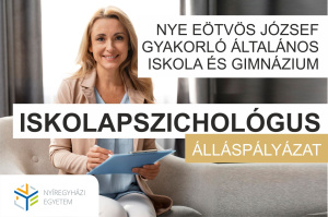 A Nyíregyházi Egyetem pályázatot hirdet az Eötvös József Gyakorló Általános Iskola és Gimnáziumába történelem vagy történelem-bármely szakos gimnáziumi tanár munkakör betöltésére.