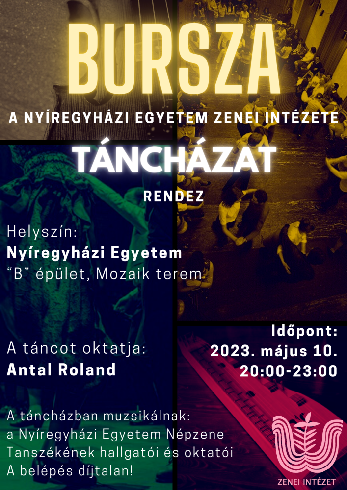 A koncertet követően rendezi meg a Bursza Táncházat a Nyíregyházi Egyetem Zenei Intézete a Nyíregyházi Egyetem Campus Kollégium éttermében. A táncot oktatja: Antal Roland. Időpont tehát 2023. május 10. (szerda) 20:00-23:00. Muzsikálnak: a Nyíregyházi Egyetem Népzene Tanszékének hallgatói és oktatói. A belépés díjtalan!