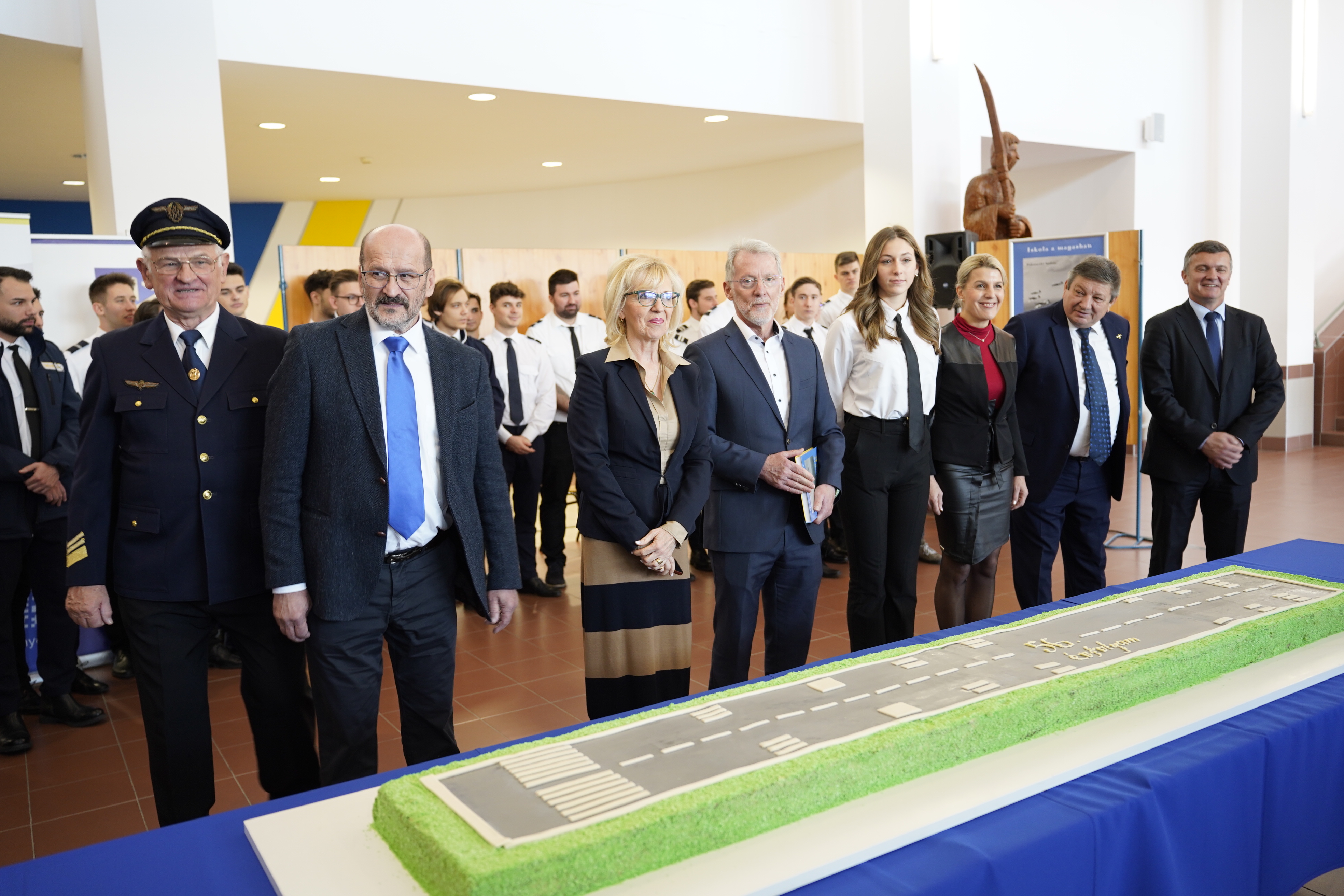 Az ünnepléshez torta is dukál, ezúttal egy stílusos meglepetéssel szolgált a Nyíregyházi SZC Sipkay Barna Technikum: egy repülőtéri kifutópályát sütöttek ki, illetve meg, amit aztán Halkóné dr. Rudolf Éva kancellár szelt fel.