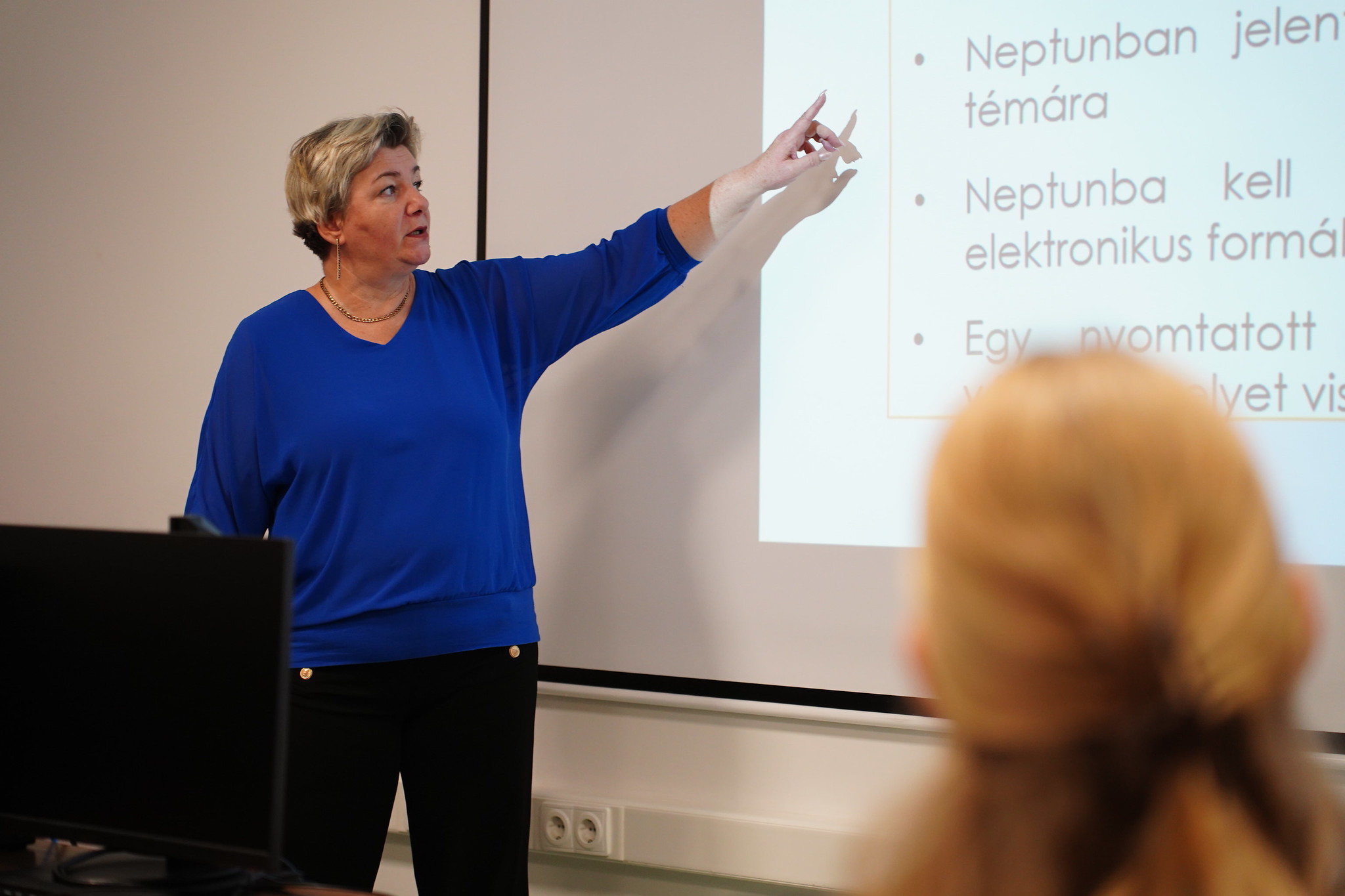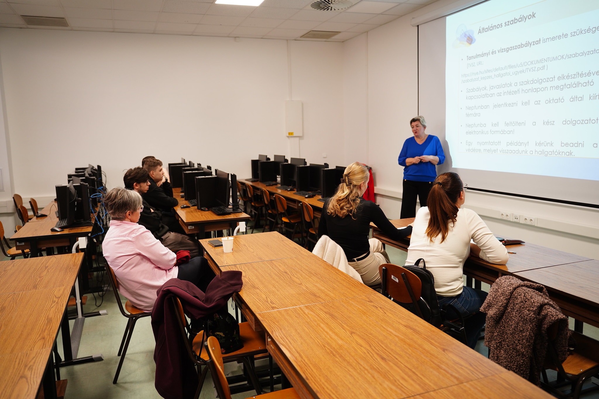 Az eseményen Tanyiné dr. Kocsis Anikó, a Matematika és Informatika Intézet igazgatója, valamint Szabó József Mihály mesteroktató segítette a végzős hallgatókat abban, hogyan válasszanak témát, hogyan építsék fel szakdolgozatukat, és mire figyeljenek a védés során. A rendezvény egyúttal a mesterséges intelligencia felelős használatáról szóló egyetemi állásfoglalás megismerésére is lehetőséget adott.
