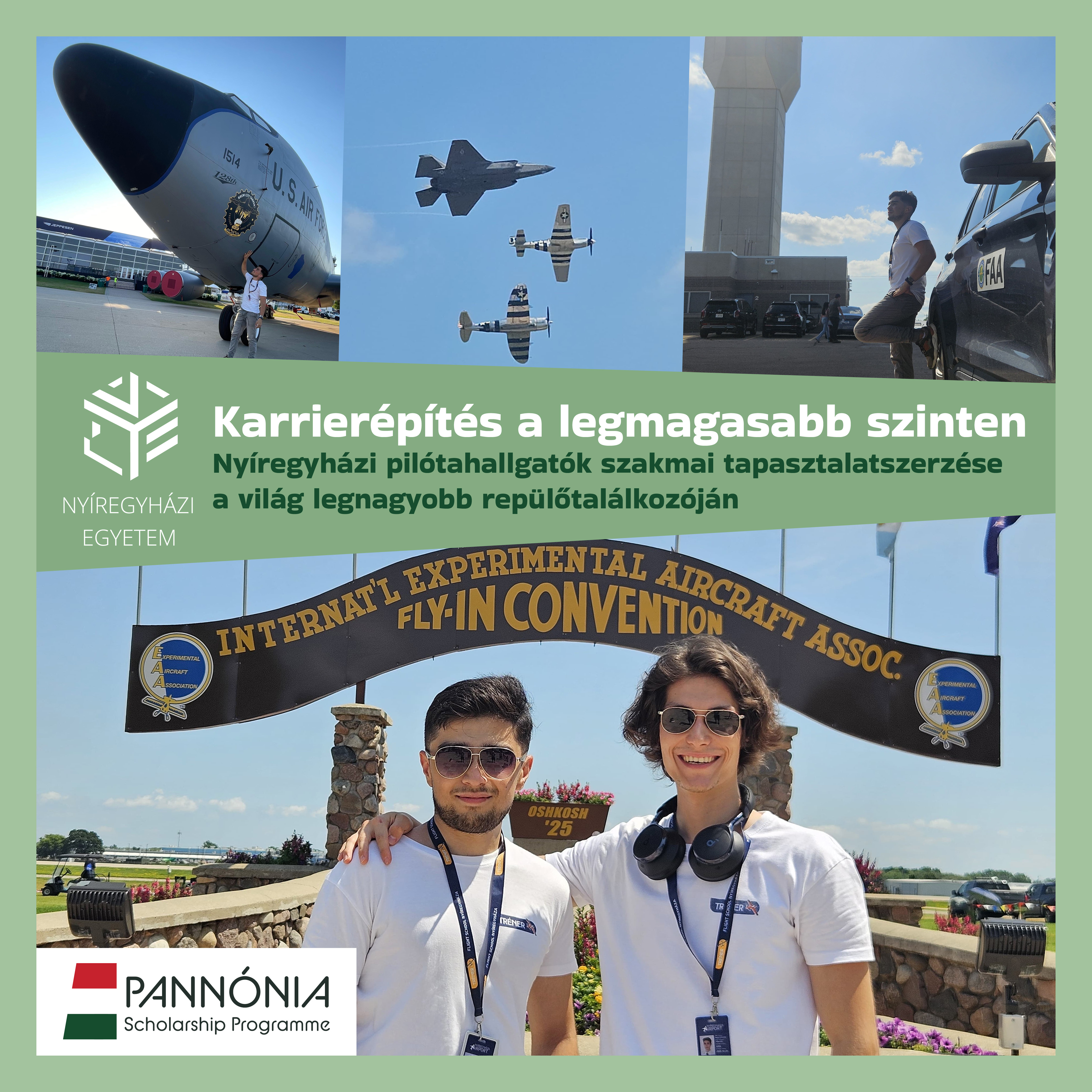 Egyedülálló repüléstechnológiai és szakmai élményekkel gazdagodtak a Nyíregyházi Egyetem pilótahallgatói a wisconsini EAA AirVenture 2025-ös rendezvényén. Az egyesült államokbeli tanulmányi út finanszírozásában a Pannónia Ösztöndíjprogram nyújtott jelentős segítséget a fiataloknak.