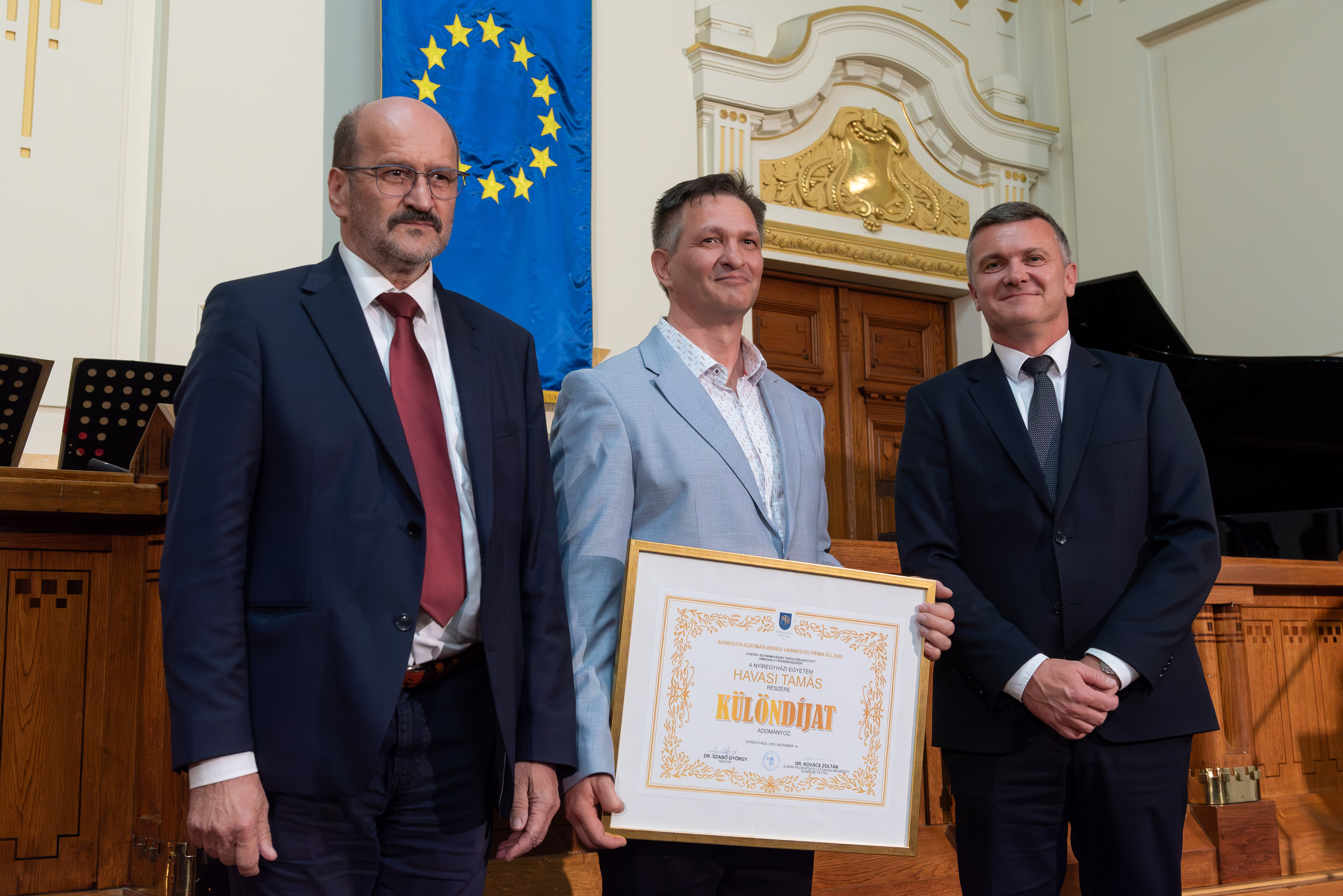 Az alkotó pedagógus a 2025. november 14-én, a Vármegyeháza Bessenyei termében megrendezett ünnepi gálán a Nyíregyházi Egyetem különdíját vehette át.