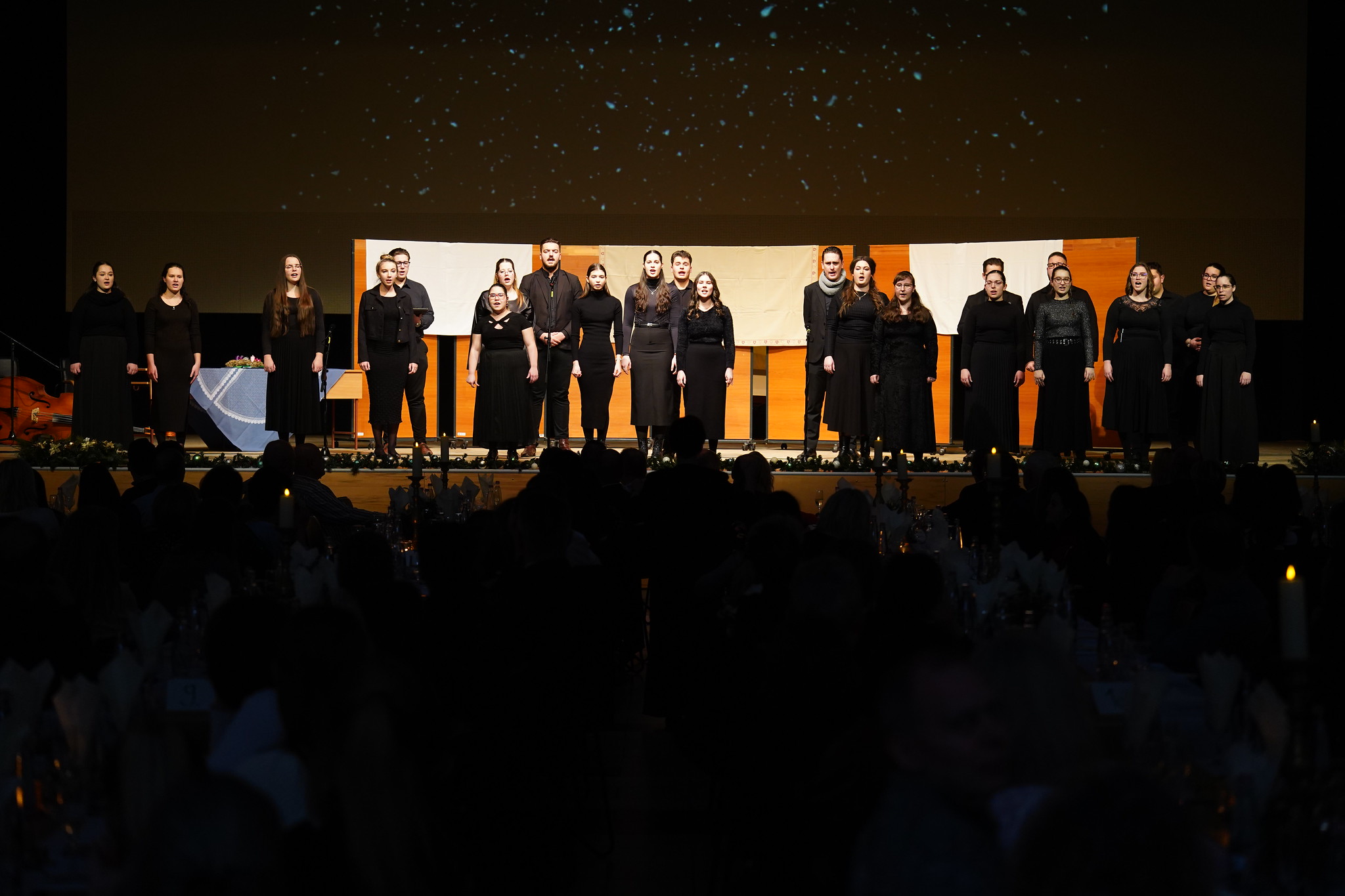 Az ünnepségen Dr. Mészáros József úr, a Nyíregyházi Egyetemért Alapítvány kuratóriumi elnöke, majd Dr. Kovács Zoltán, elnökhelyettes úr is köszöntötte a résztvevőket. Kiemelték, hogy a Nyíregyházi Egyetem az elmúlt 10 év legeredményesebb beiskolázási időszakát zárta. A következő évre az ideihez hasonló és szebb szakmai sikereket, eredményes munkát, összetartó közösséget és jó egészséget kívántak. A hivatalos gondolatokat követően az ünnepi program a Zenei Intézet meghitt műsorával folytatódott. Az előadás segített abban, hogy a résztvevők ne csak a naptár szerint, hanem lélekben is megérkezzenek a karácsonyhoz.