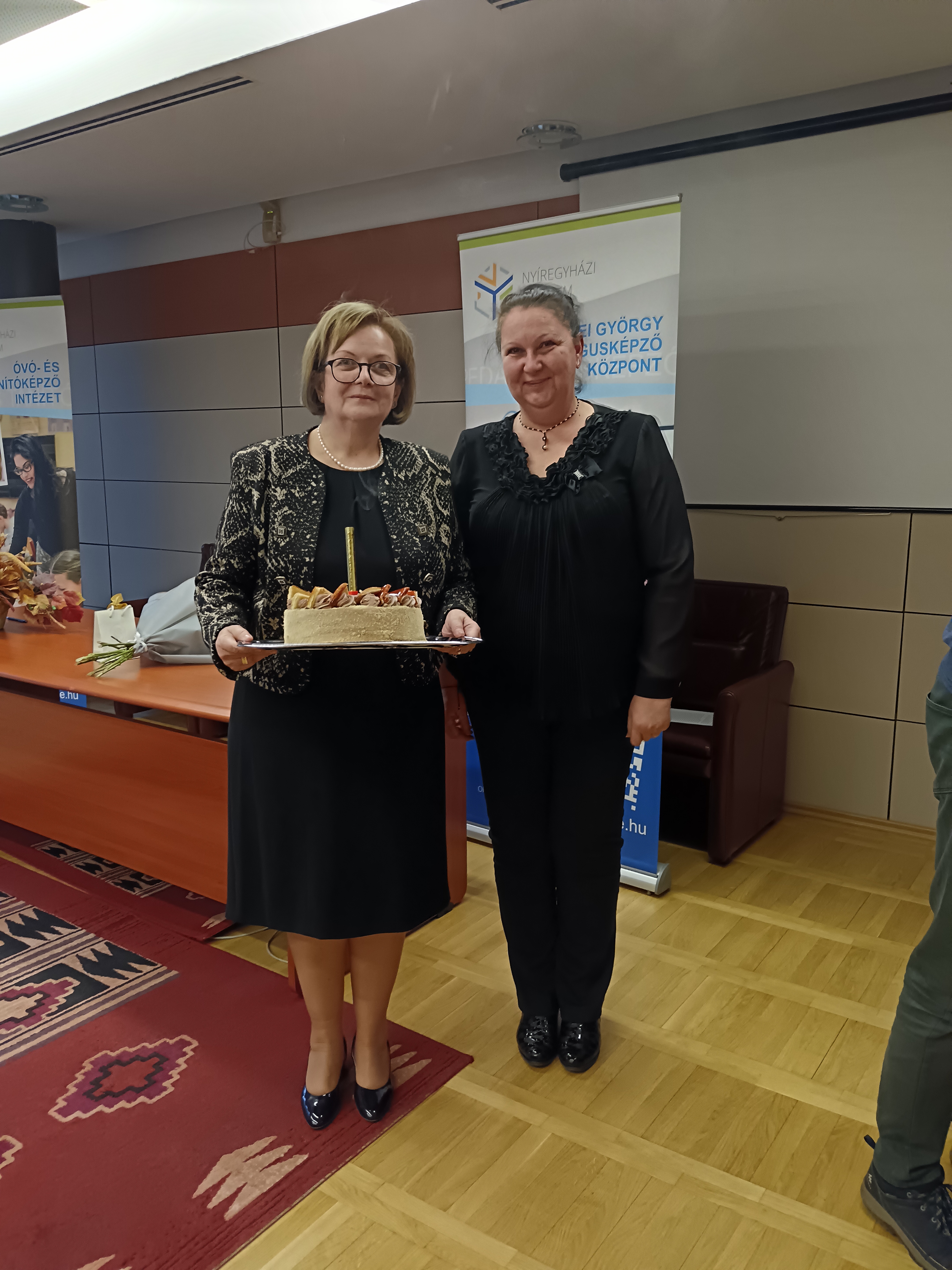 2025. december 15-én, nyugdíjba vonulása alkalmából ünnepélyes keretek között köszöntötte egyetemünk vezetése, a Bessenyei György Pedagógusközpont és az Óvó- és Tanítóképző Intézet Dobos Zoltánnét, a Nyíregyházi Egyetem Eötvös József Gyakorló Általános Iskola és Gimnázium gyakorlati képzésért felelős igazgatóhelyettes asszonyát.