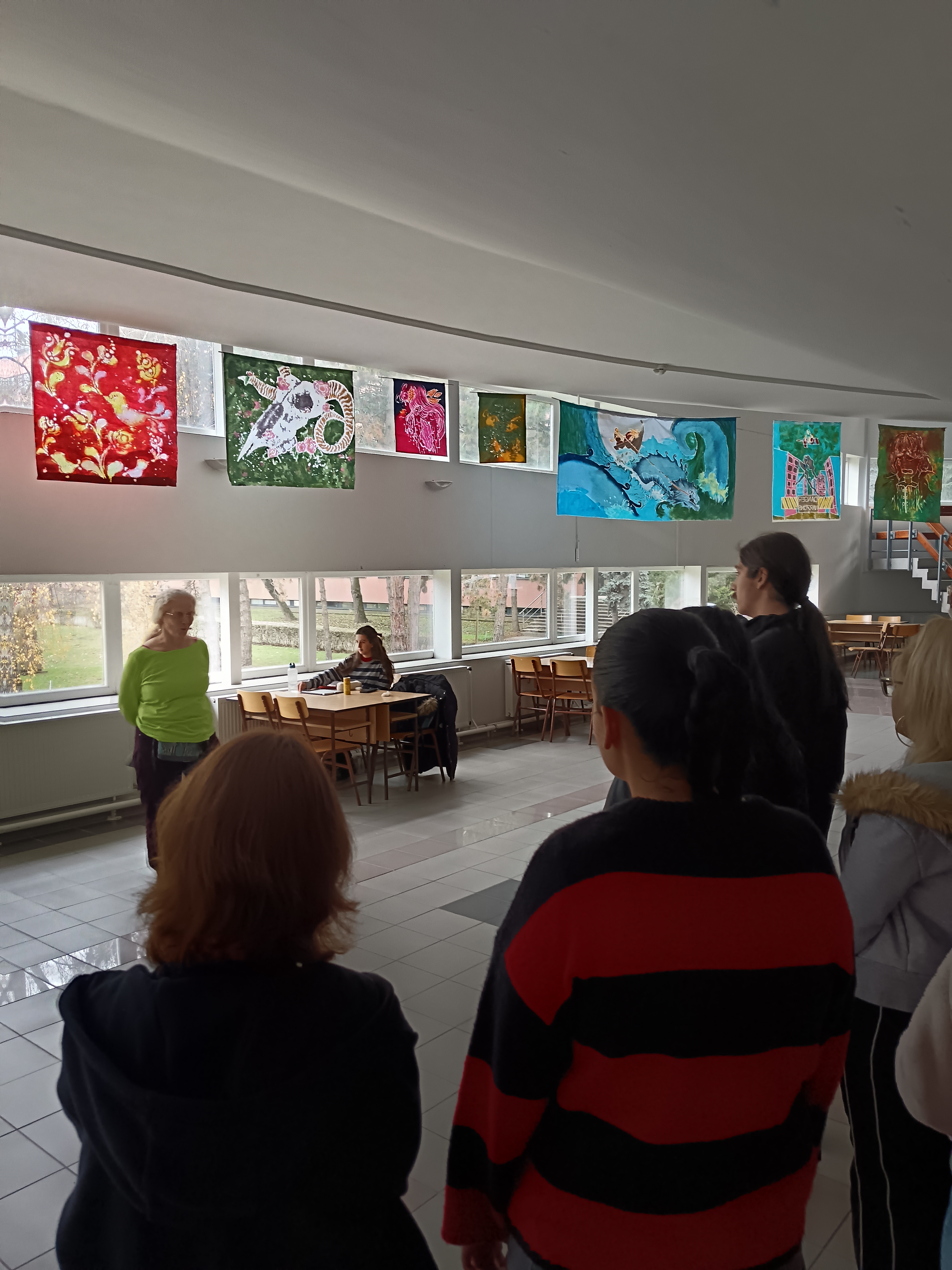 „A batikolást tulajdonképpen a fény élteti” – fogalmazott Tóth Lívia. – „A viaszolt felületeken a fény életre kelti a többi színt is. A viasz elválaszt, majd kontrasztot adva felerősíti a színeket.” Mint elmondta, a hallgatók többféle módszerrel dolgoztak: kötözéssel, gyűréssel, hajtogatással, valamint ecsettel felhordott viasszal. „Mi most a kontúrokat viaszoltuk, és mindenki a saját hangján kereste a megoldásait.”