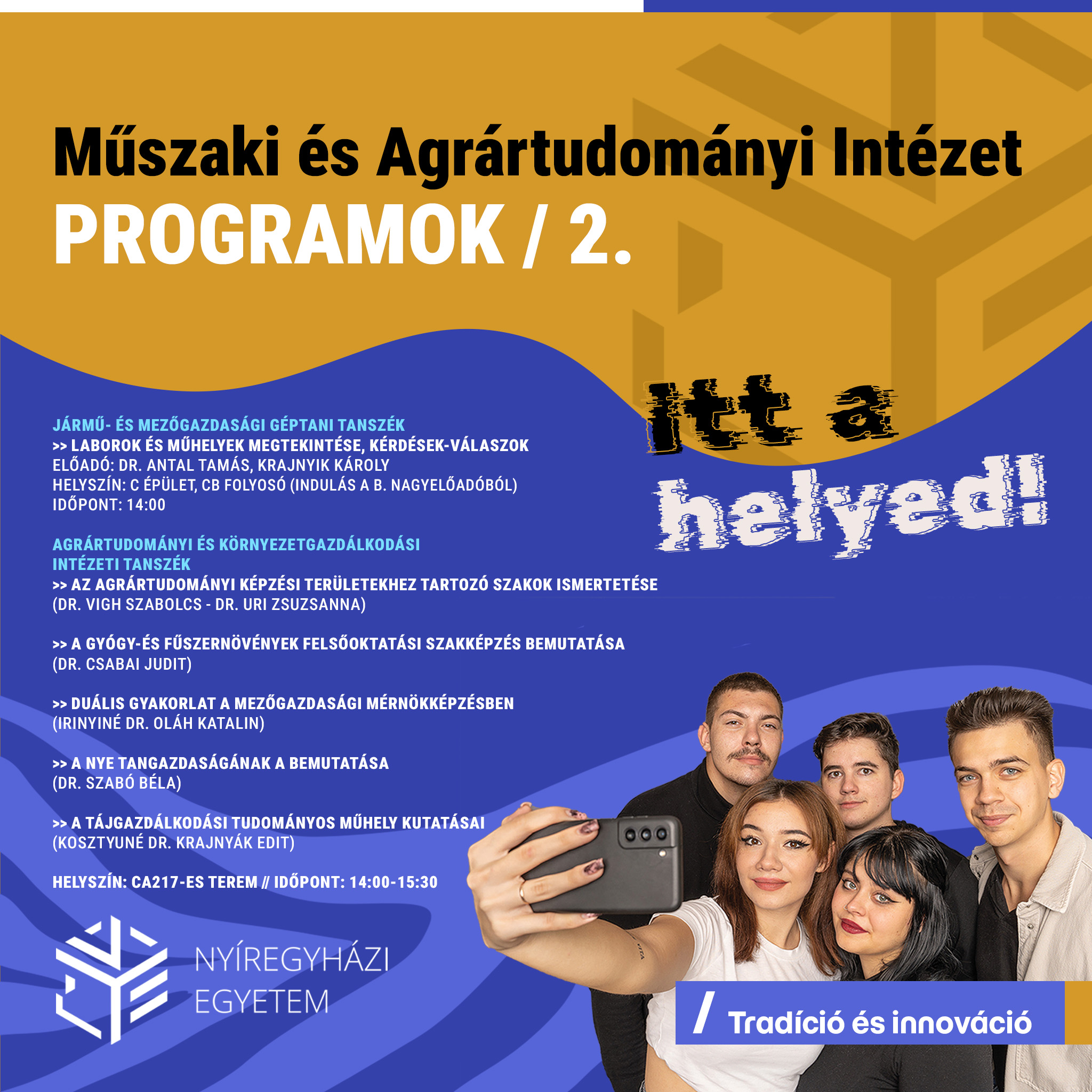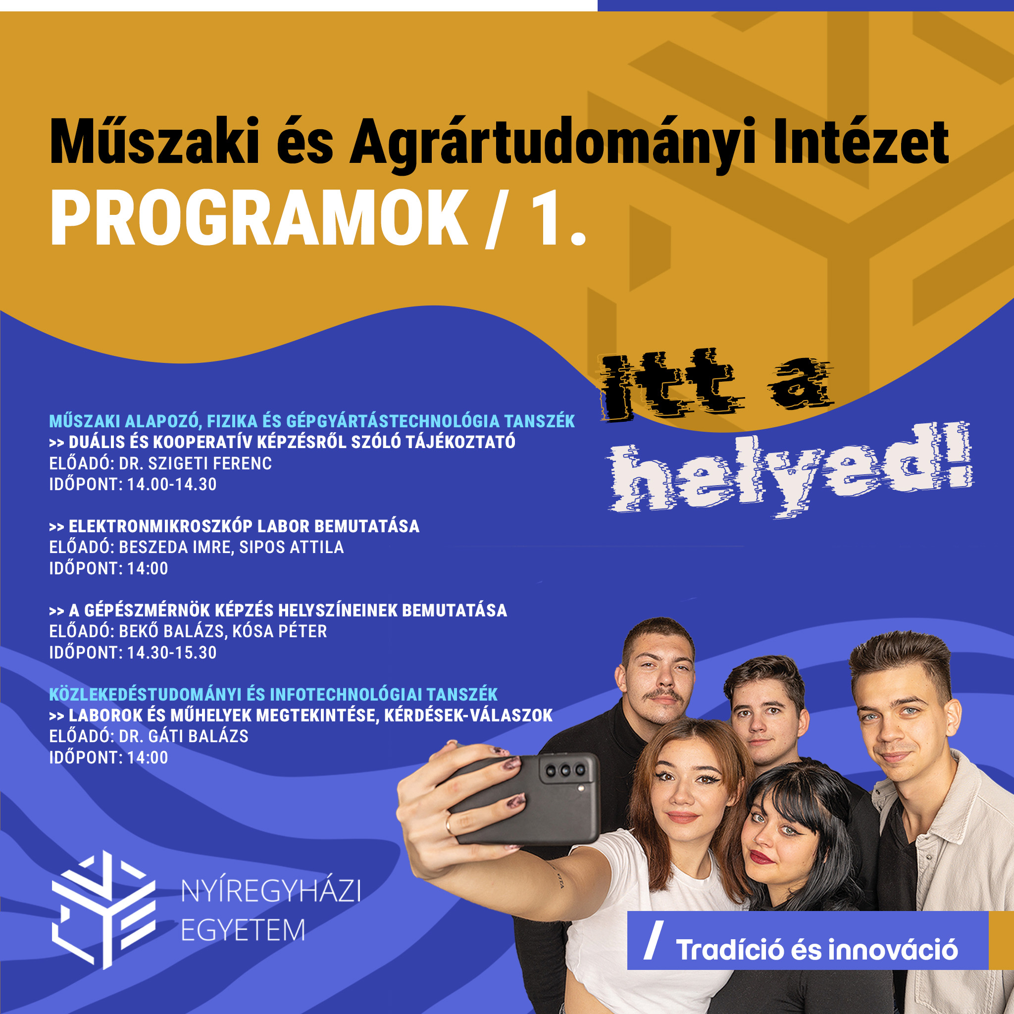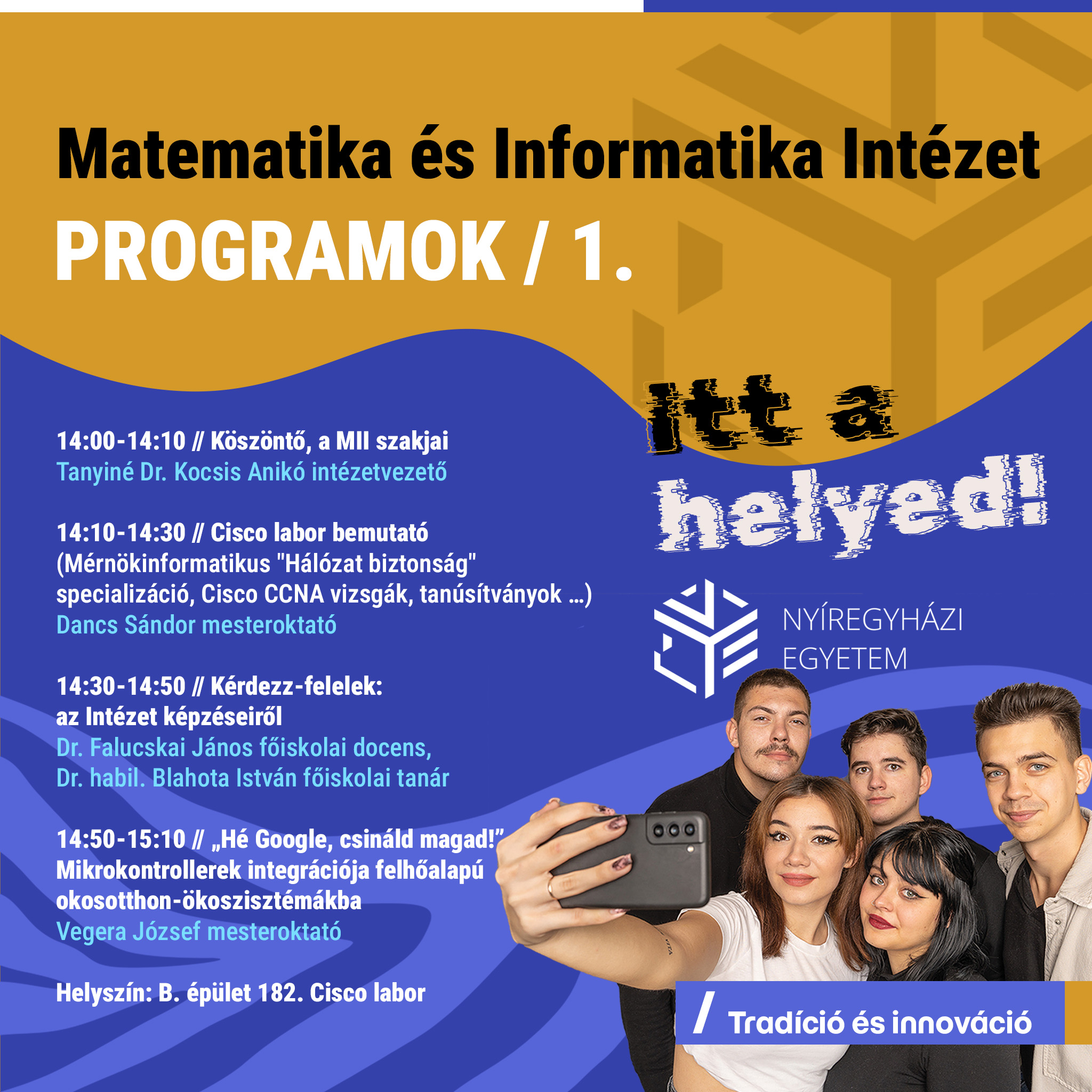 Program: Szakok bemutatása, hallgatói tapasztalatok, kutatási lehetőségek az intézetben.
