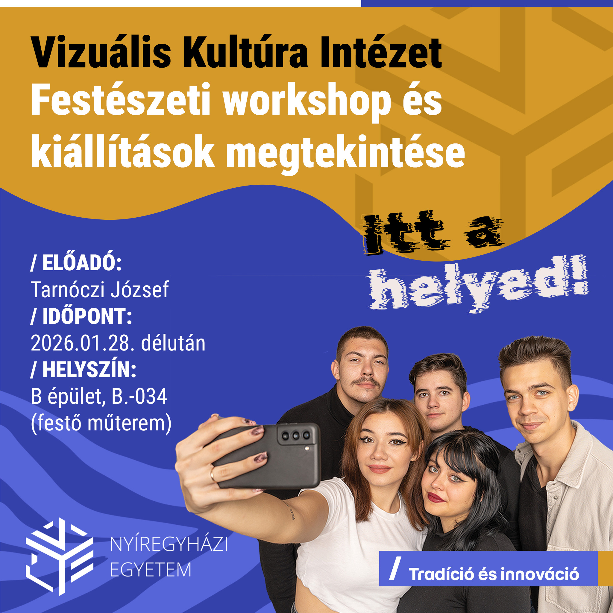 A Vizuális Kultúra Intézetből Havasi Tamás mesteroktató kolléga kíséri az előadóteremtől az intézeti programra az érdeklődő diákokat.