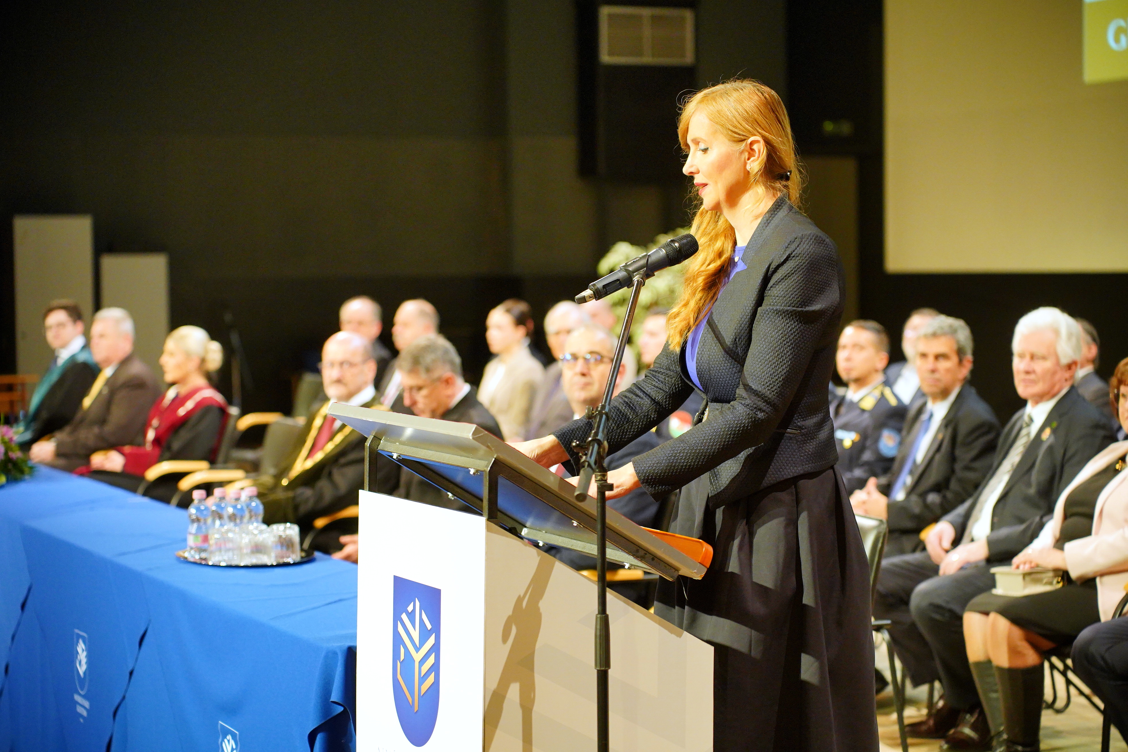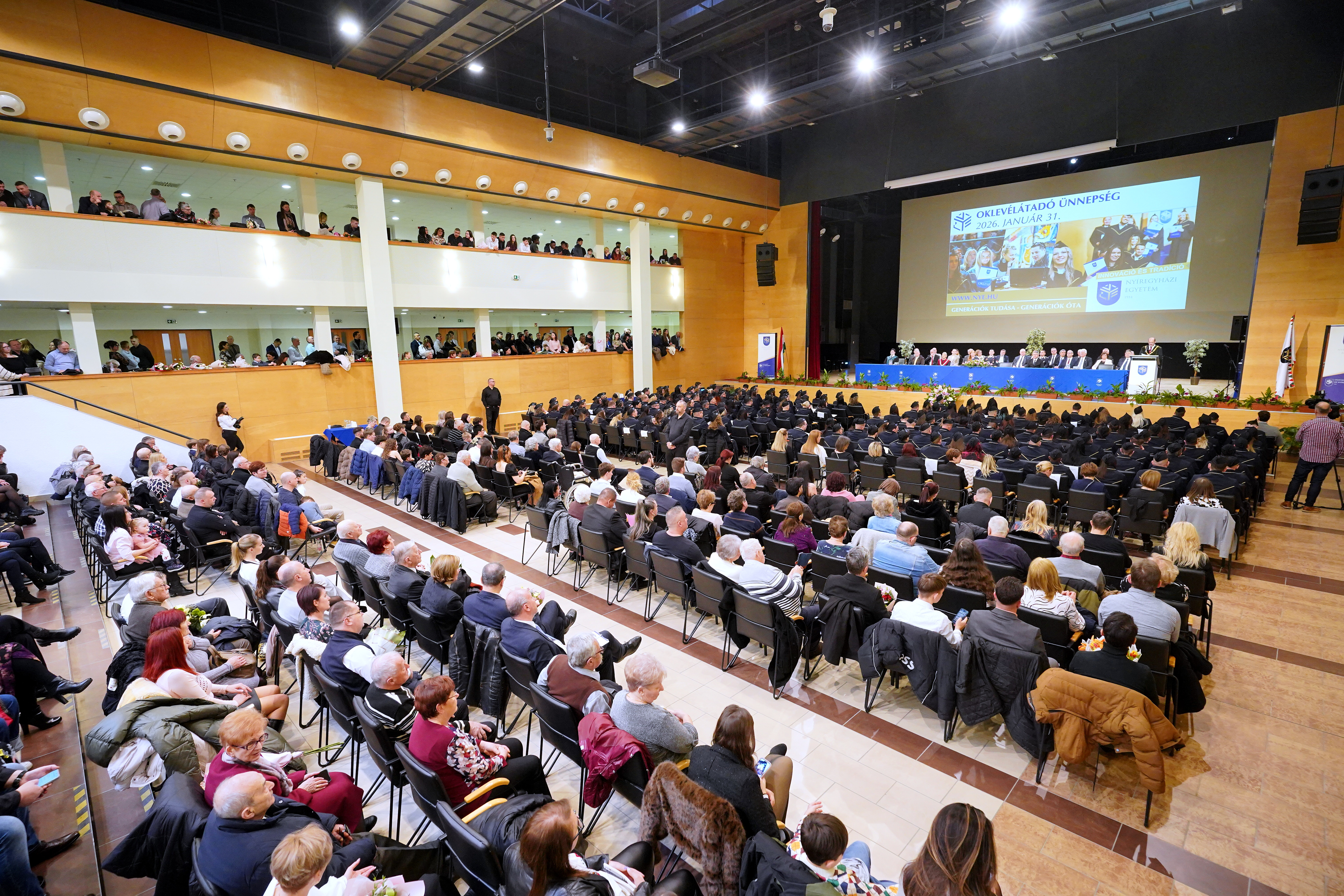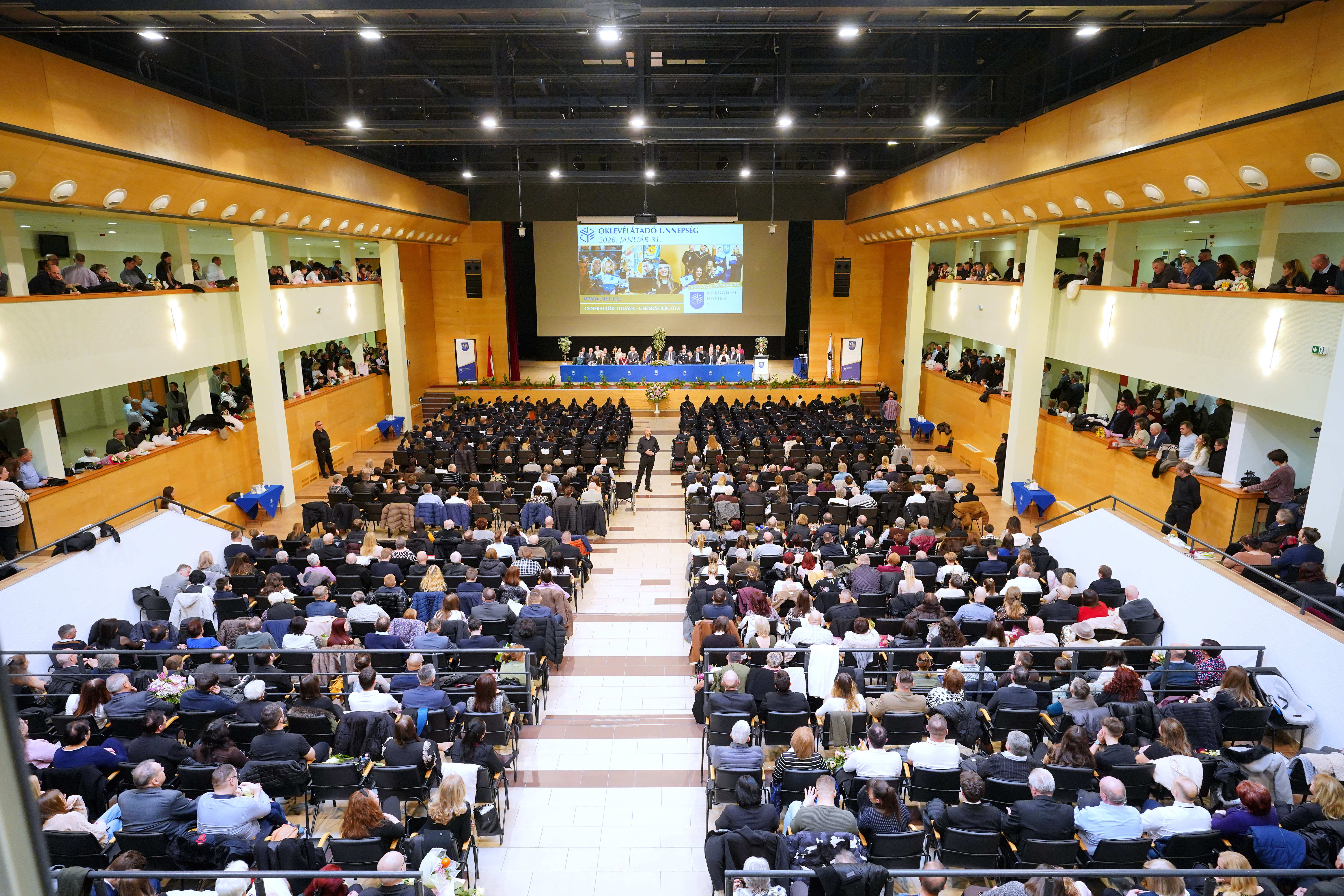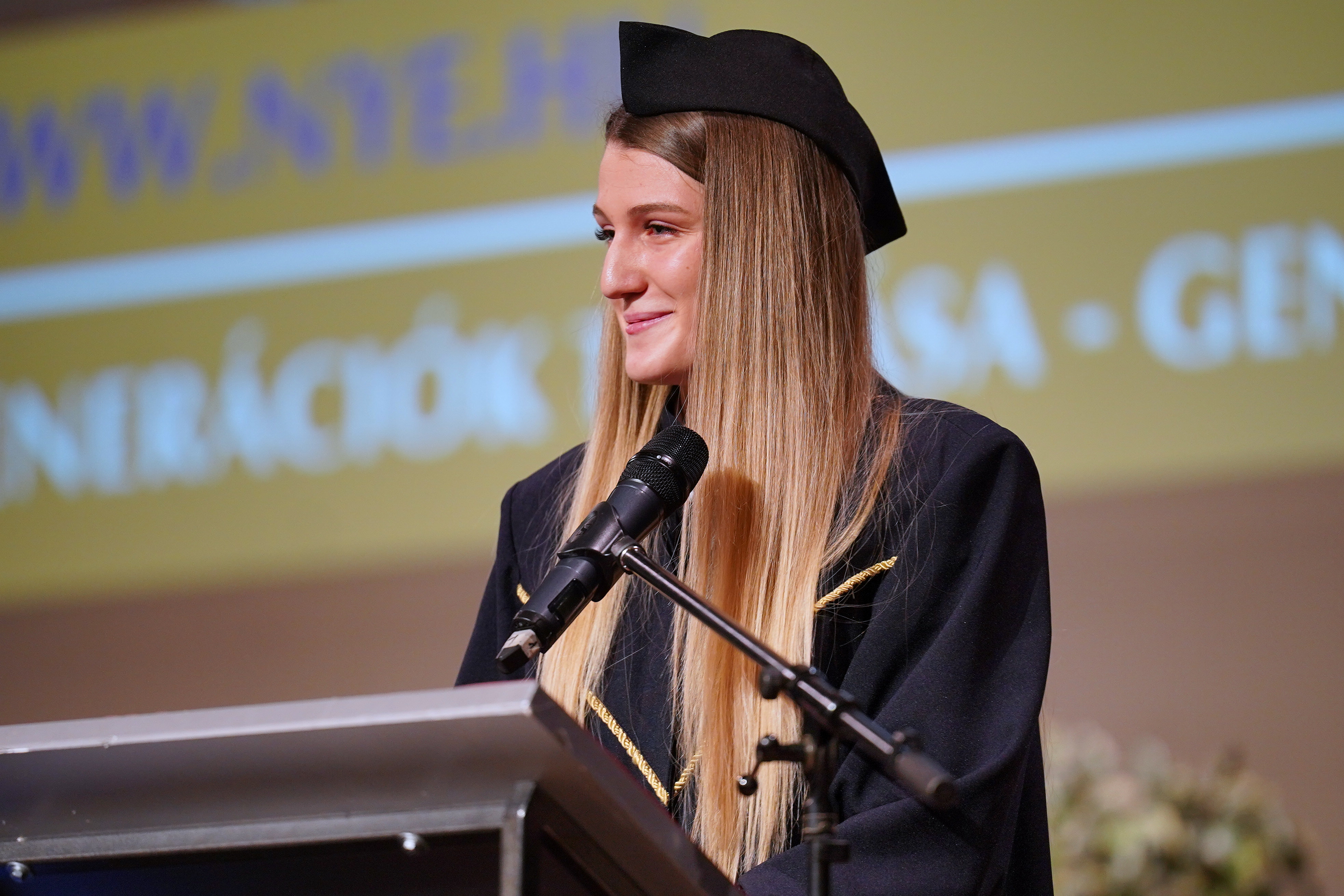 „Az oklevélátadó az egyetemi élet egyik legfontosabb eseménye, amely egyszerre szól a hallgatók teljesítményéről, az oktatók munkájáról és a közösség erejéről” – emelte ki köszöntőjében dr. Szabó Tünde országgyűlési képviselő. Hangsúlyozta: a diploma egy hosszú út fontos állomása, amely mögött kitartás, szorgalom és felelősségvállalás áll. Emlékeztetett arra is, hogy a hallgatóknak az évek során sokszor kellett egyszerre helytállniuk a tanulásban, a munkában és a családi szerepekben. Mint mondta: „az eredmények mögött mindig következetes munka áll, az oklevél megszerzése pedig nem végállomás, hanem a tanulási folyamat része”. A képviselő méltatta az egyetem gyakorlatközpontú, a munkaerőpiaci igényekhez igazodó képzéseit, valamint az intézmény szerepét a város, a térség és az ország fejlődésében, hangsúlyozta továbbá: szükség van a végzősök tudására, munkájára és felelősségvállalására.