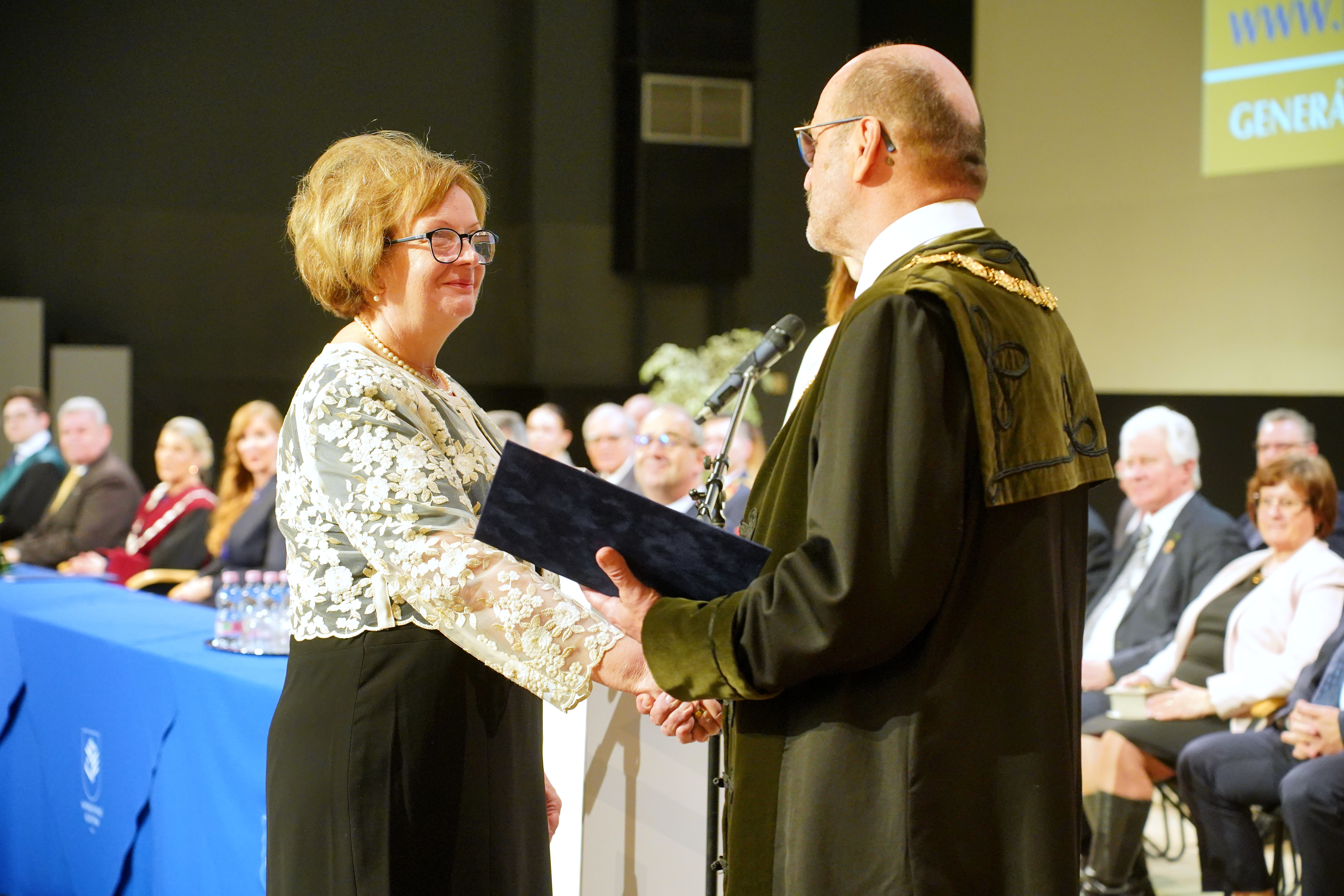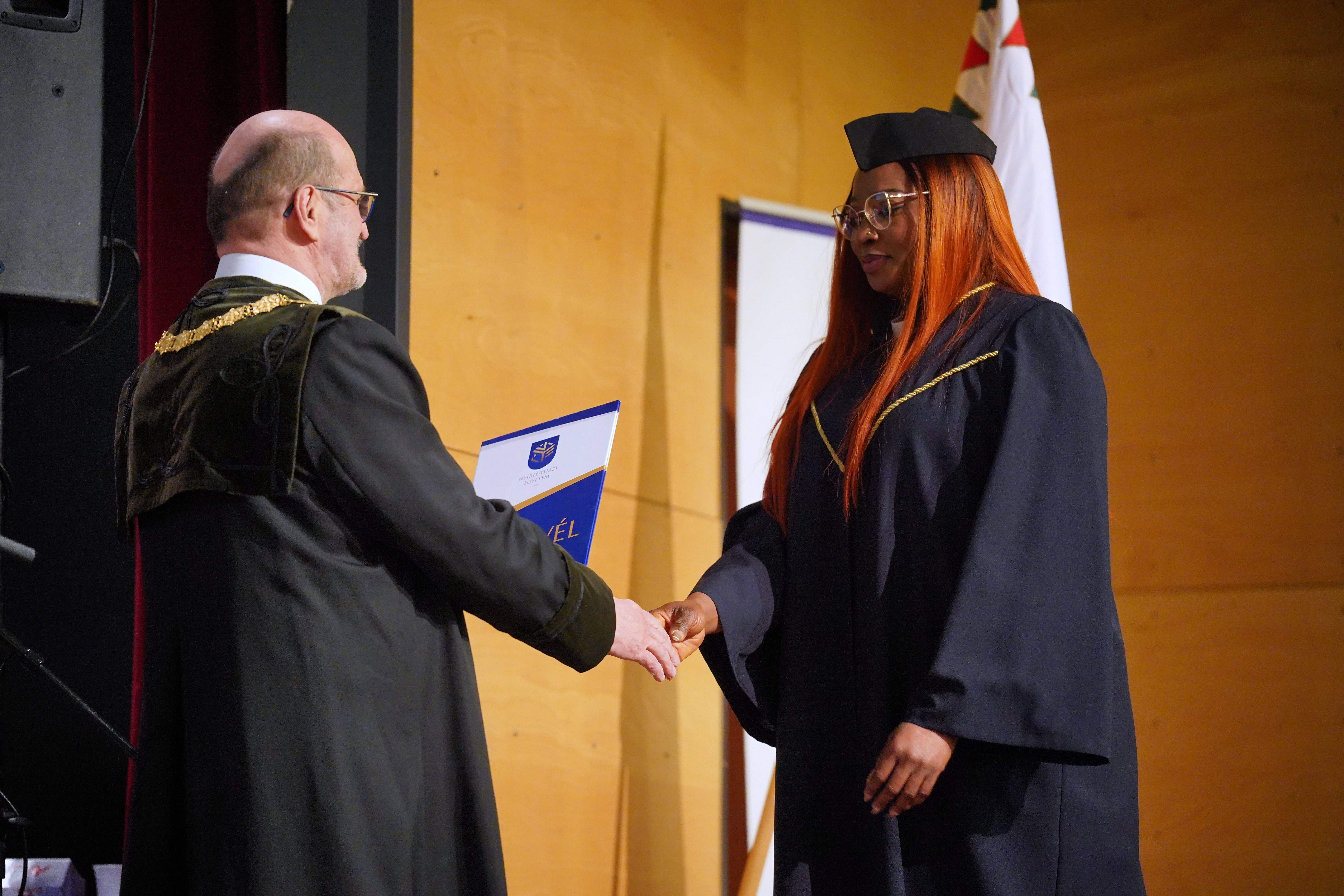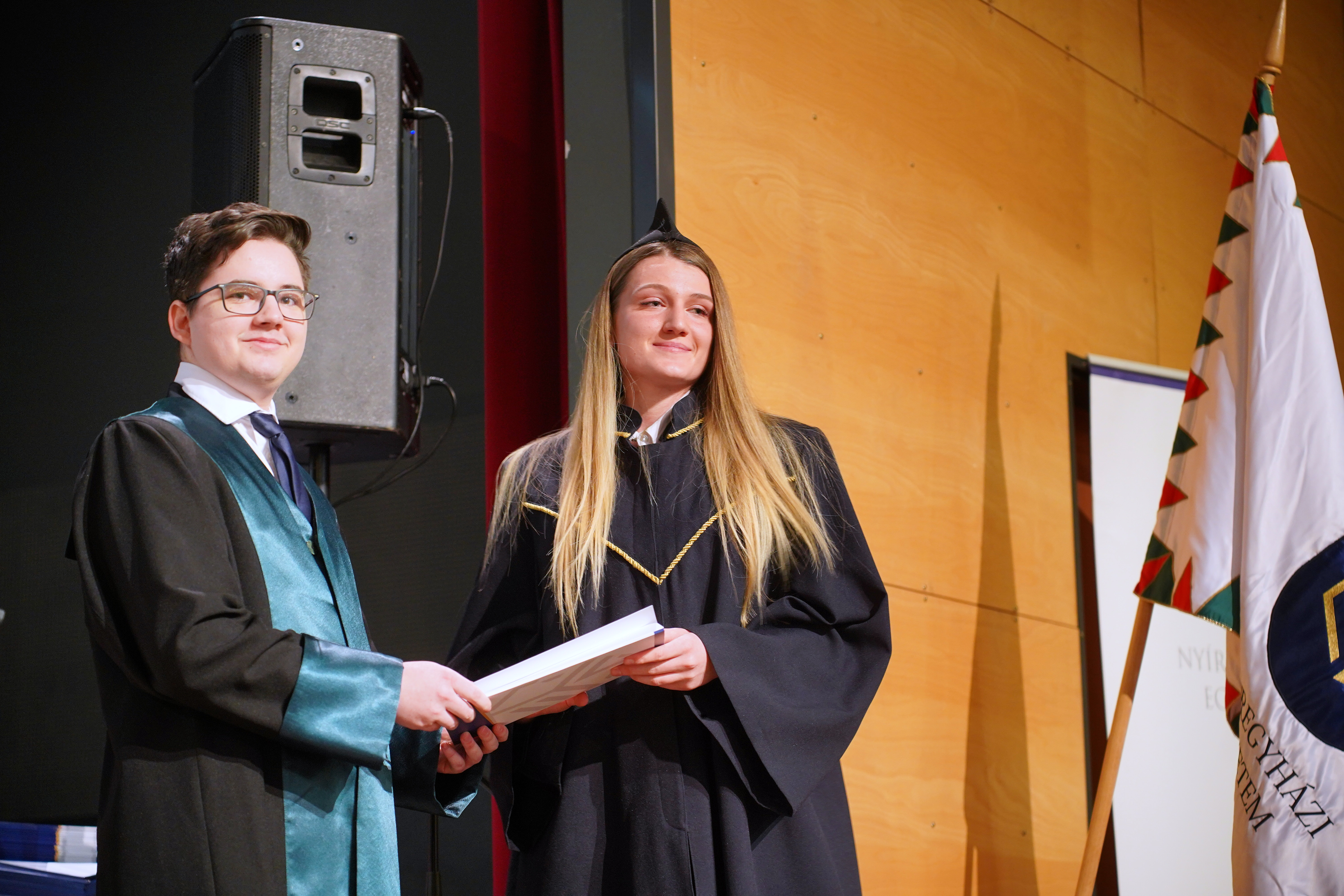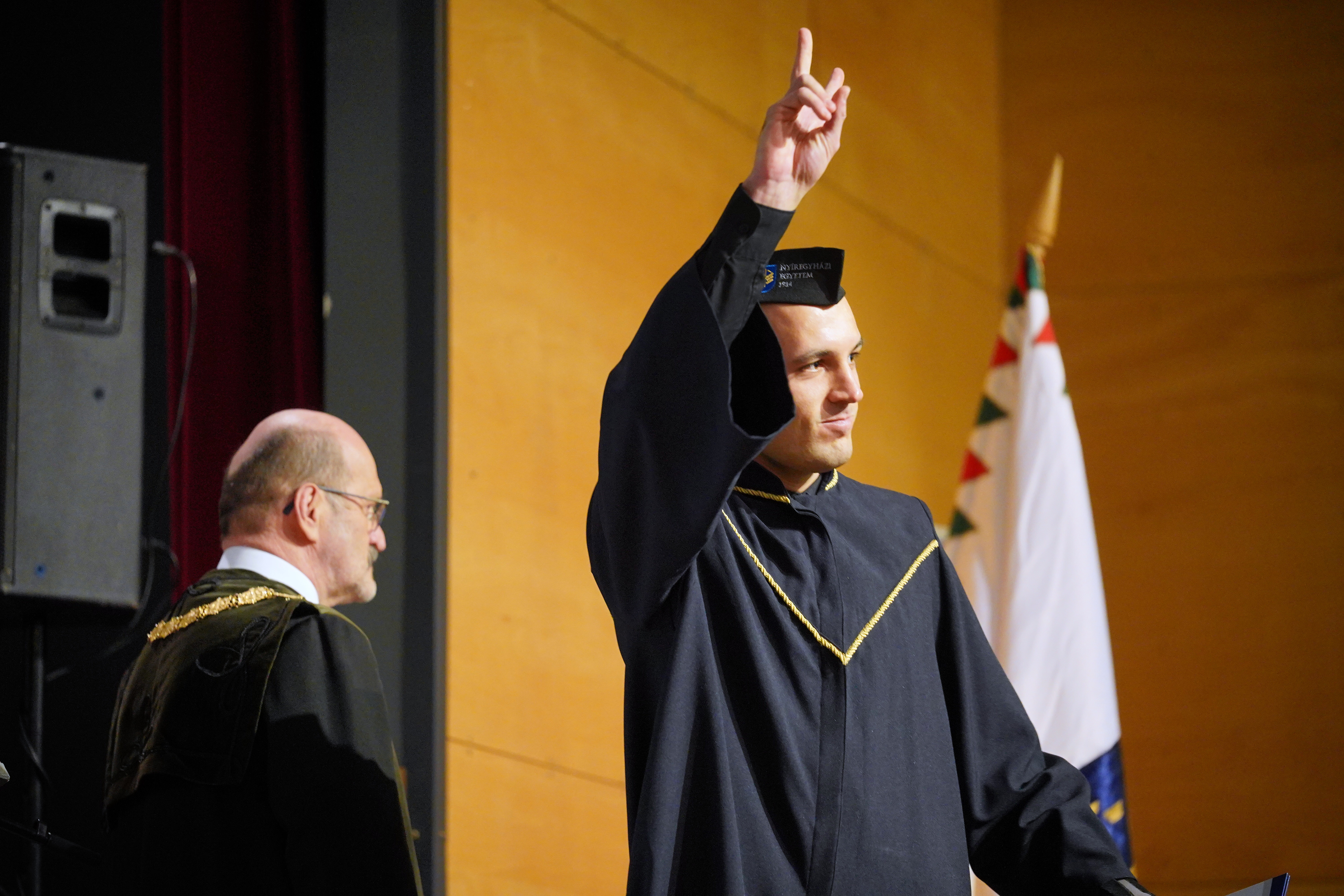 A beszédeket követően a 185 végzett hallgató ünnepélyes keretek között dr. Szabó György rektortól vehette át oklevelét.