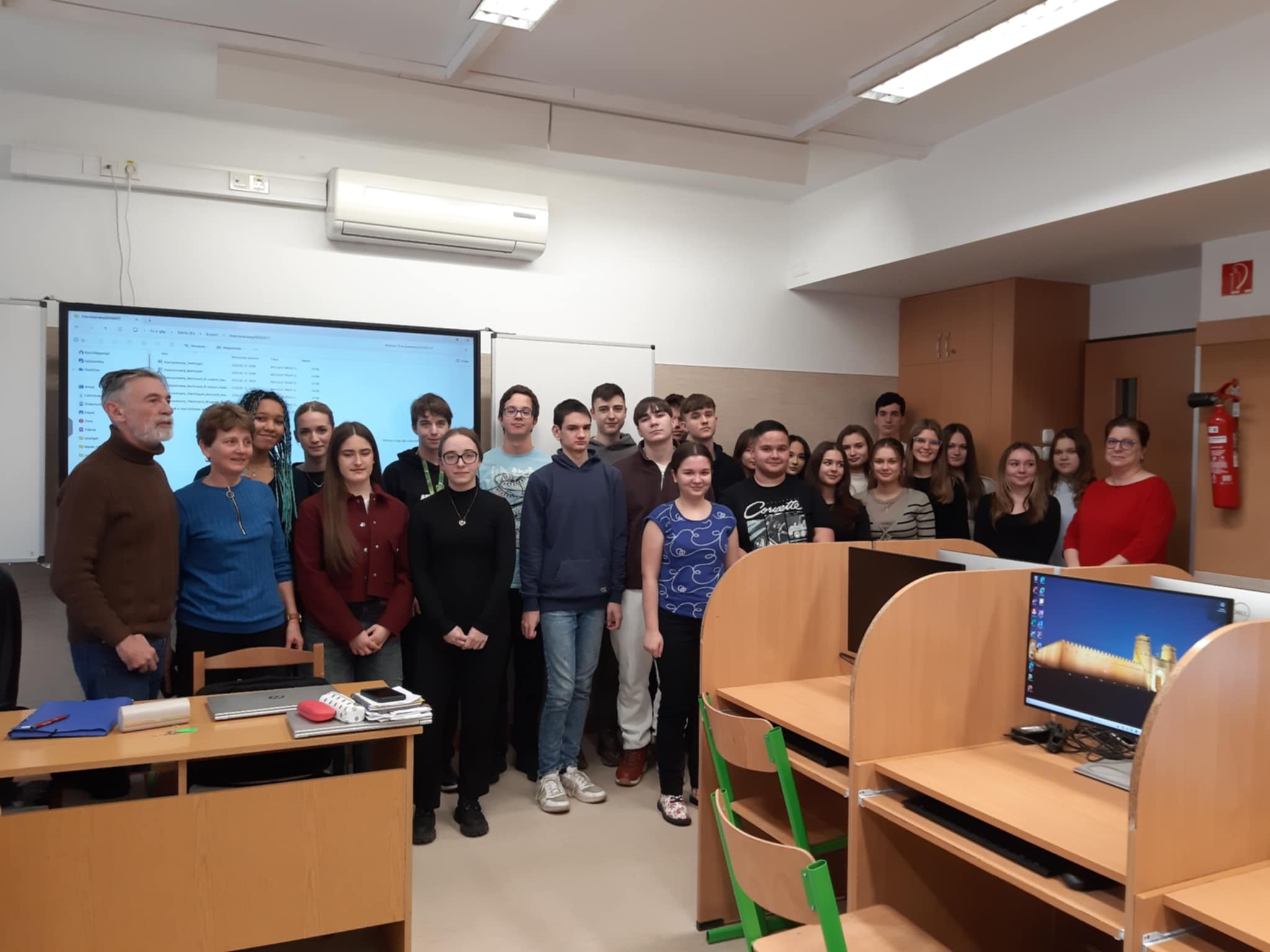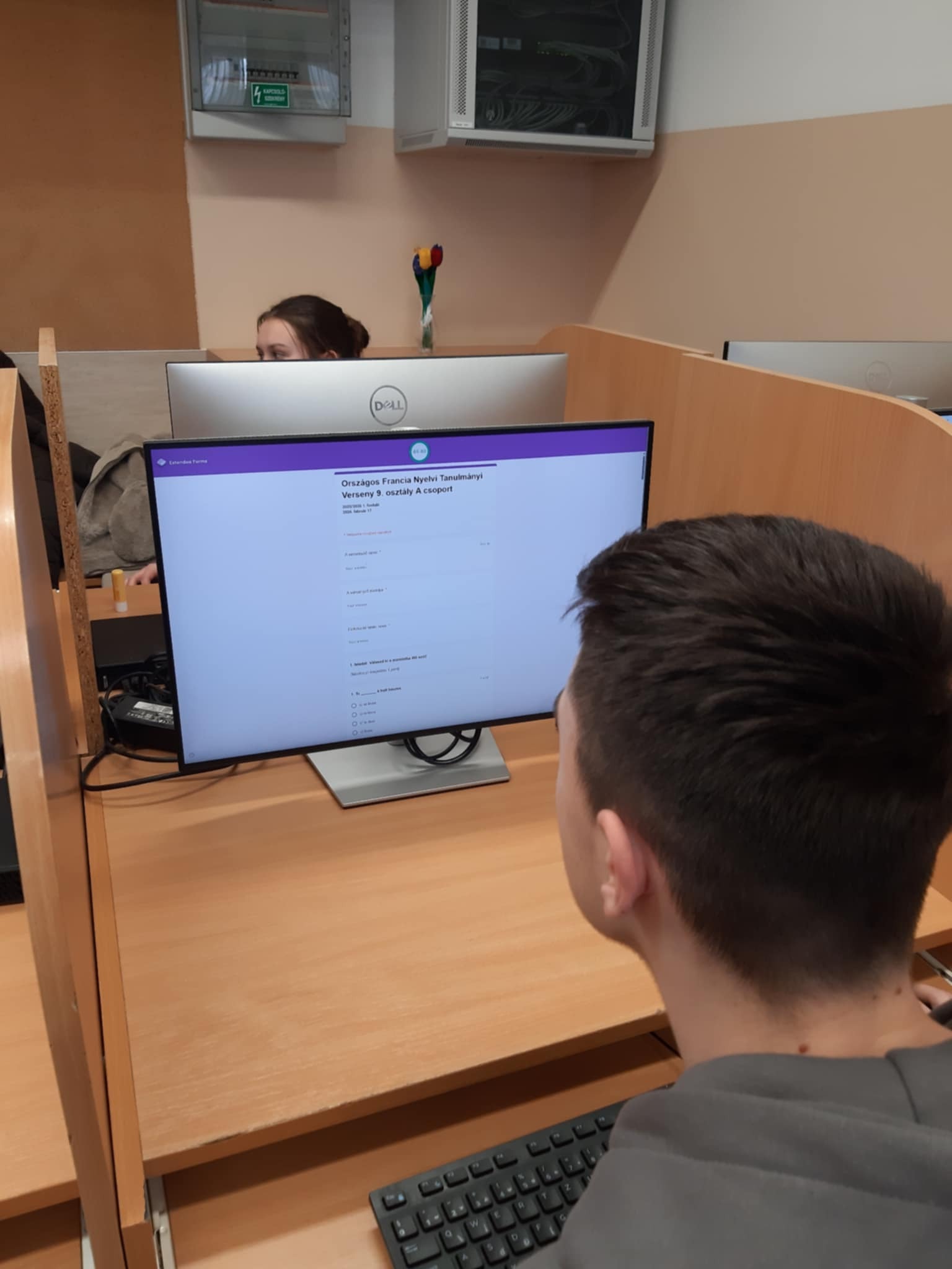 Vendégük az intézményvezetővel és a franciatanárokkal is találkozott, valamint sok sikert kívánt a versenyen részt vevő diákoknak. A feladatok megoldására 45 perc állt a versenyzők rendelkezésére. A beküldést követően a diákok azonnal visszajelzést kaptak eredményükről, és megtudhatták, hogy az elérhető 50 pontból hány pontot szereztek. Az első forduló eredményei alapján a 7–8. évfolyamos tanulók közül az 1–6. helyezetteket díjazzák. A 9–10. évfolyamos versenyzők közül kategóriánként 20–40 tanuló jut tovább a második fordulóba, a nevezők létszámától függően: