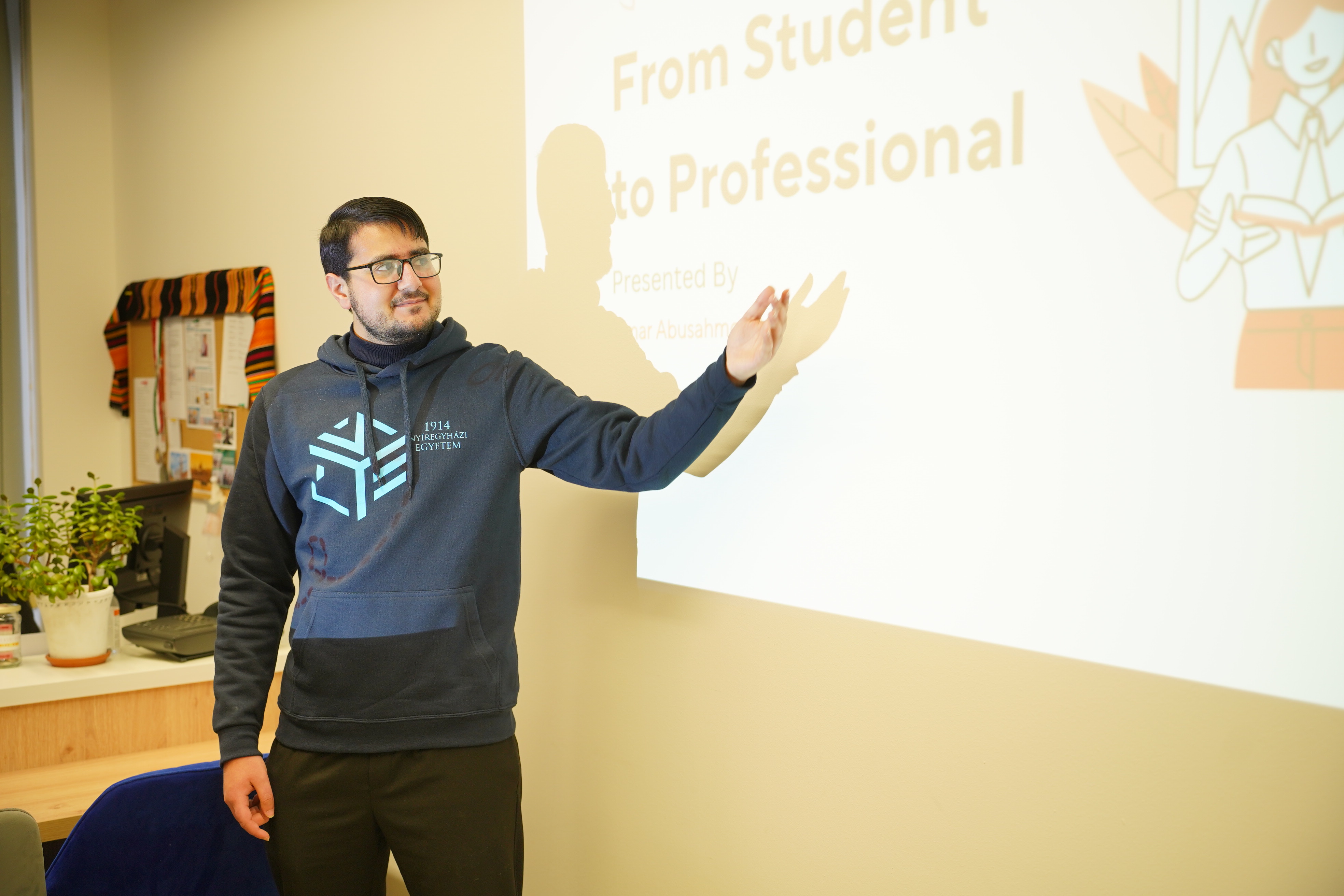 Első alkalommal rendezett alumni-bemutatót a Nyíregyházi Egyetem Nemzetközi Kapcsolatok Irodája. A meghívott előadó Omar Abusahmoud, a magyar nyelven jelesre diplomázott programtervező informatikus volt. A fiatal palesztin szakember ma már Belgiumban épít sikeres karriert, de - mint hangsúlyozta - szakmai és személyes fejlődésének alapjait Nyíregyházán szerezte meg.