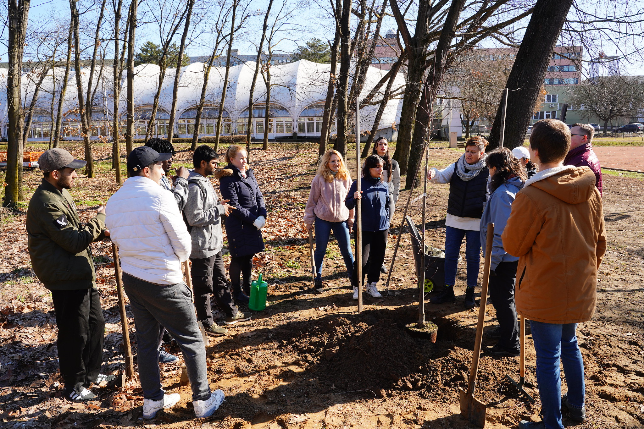A campus sportpályái melletti kiserdőben négy újabb fa gazdagítja az intézmény zöldfelületeit, hallgatók, oktatók és civil partnerek együttműködésével.