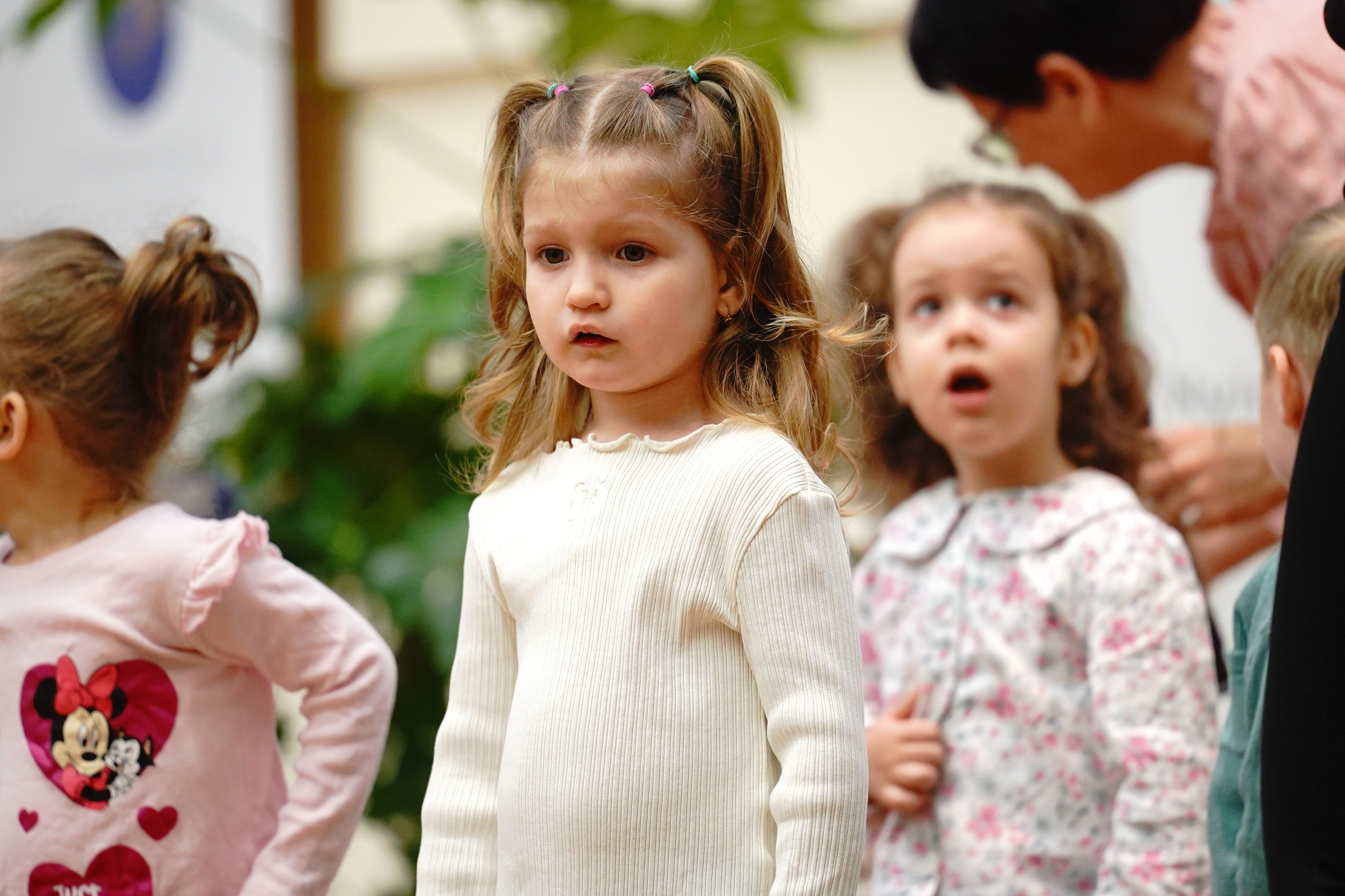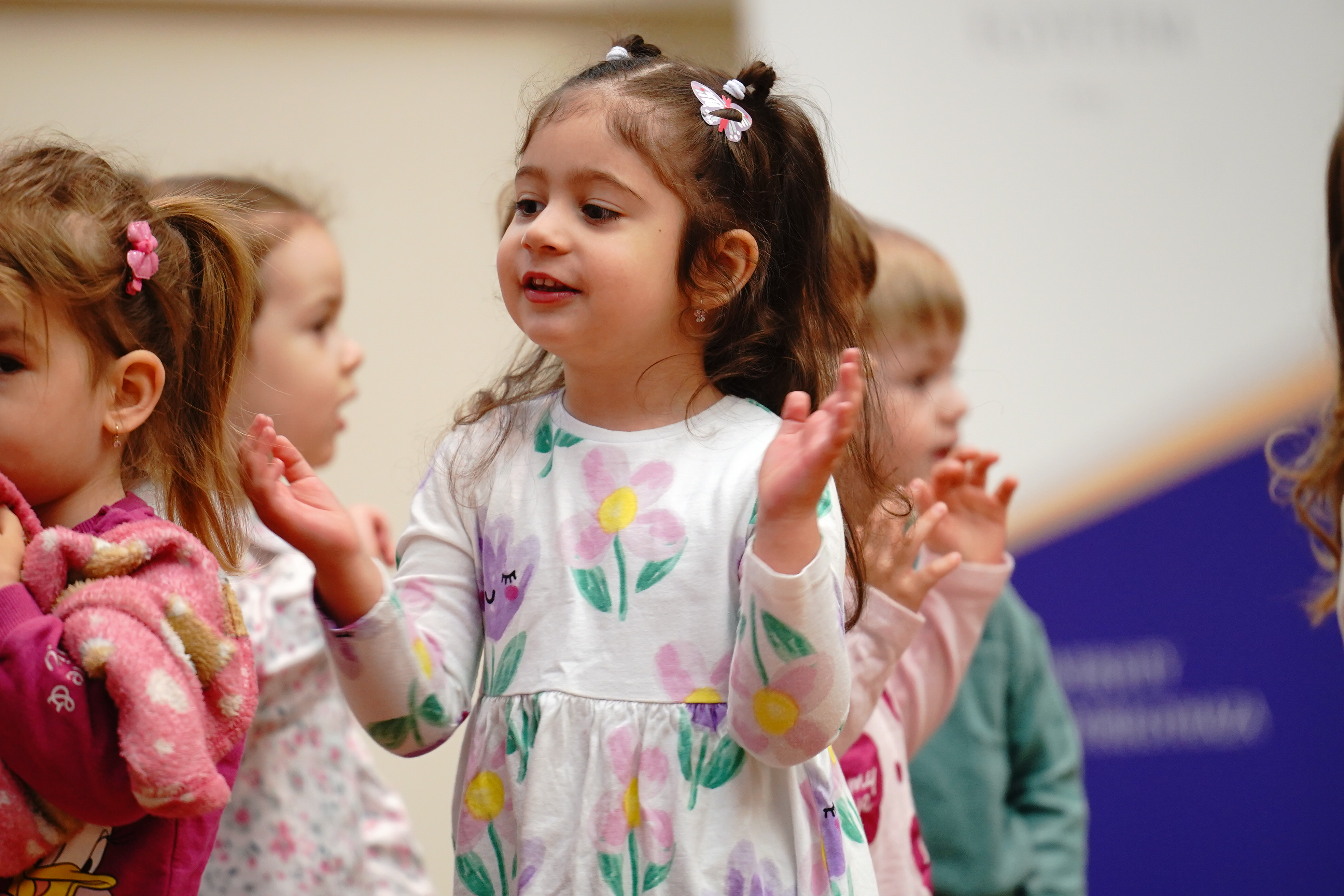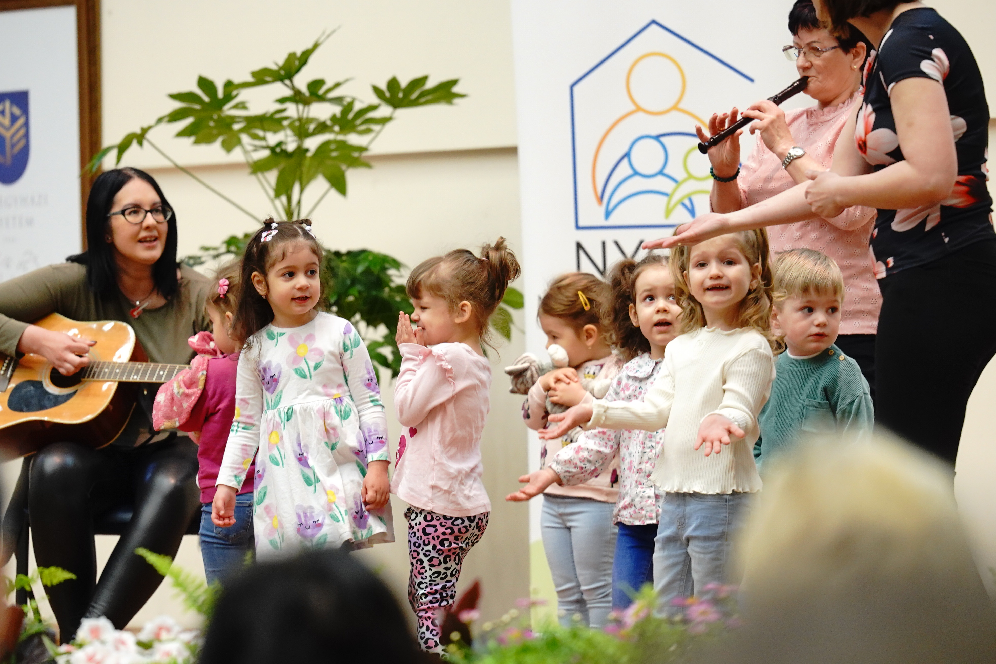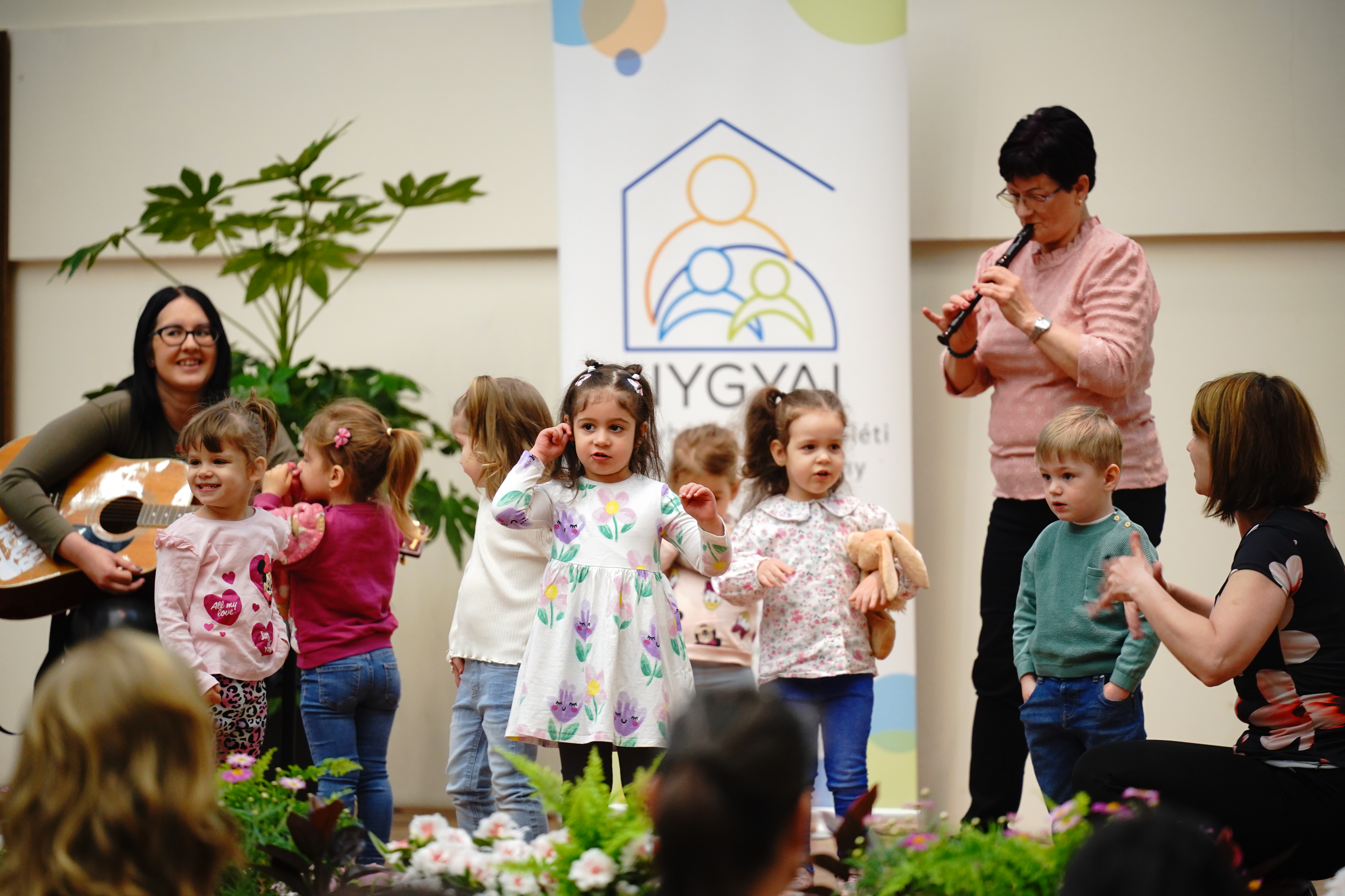 A szakmai nap az Aprajafalva Bölcsőde Mókuska csoportjának műsorával kezdődött. A gyermekek előadása a bölcsődei művészeti nevelés gyakorlatába engedett betekintést, egyben hangulatos nyitányt adott az eseménynek.