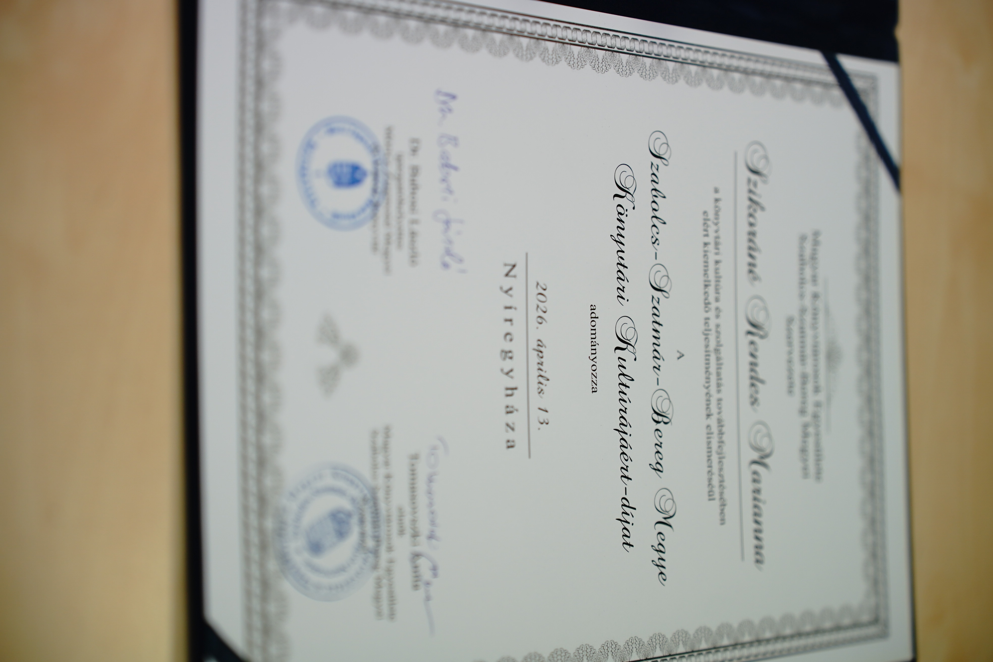 A könyvtárosok világnapja alkalmából rangos szakmai elismerést vehetett át Szikoráné Rendes Marianna, a Nyíregyházi Egyetem Központi Könyvtárának munkatársa, a Móricz Zsigmond Megyei és Városi Könyvtár ünnepségén. A szakember a Szabolcs-Szatmár-Bereg Megye Könyvtári Kultúrájáért-díjat kapta meg. A közel négy évtizedes pályát elismerő díj a könyvtárban végzett hosszú távú szakmai munkát és annak eredményeit ismeri el.