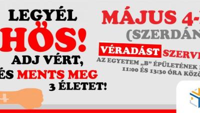 Újra egyetemi véradás! Május 4-én (szerdán) várják a véradókat a Nyíregyházi Egyetemen. Az egyetem, a Magyar Vöröskereszt Szabolcs-Szatmár-Bereg Megyei Szervezete és az Országos Vérellátó Szolgálat által szervezett véradásra 11:00-13:30 óra között érkezhetnek a segítő szándékú véradók, hallgatók, dolgozók, oktatók a "B" tanulmányi épület bejáratánál, a szokásos helyszínen.
