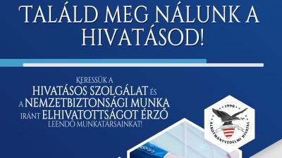 Az Alkotmányvédelmi Hivatal felvételt hirdet hivatásos állományú tiszti státuszok, elsősorban műveleti szakterületek beosztásainak, munkaköreinek betöltésére, főként budapesti munkavégzéssel.