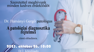 Dr. Harsányi Tamás Gergő, a Szabolcs-Szatmár-Bereg Vármegyei Oktatókórház, Jósa András Tagkórházának patológus orvosa, illetve a Debreceni Egyetem, Egészségügyi Karának oktatója „A patológiai diagnosztika rejtelmei” címmel tartott előadást 2023. október 26-án egyetemünkön, a LónyayMenyhért Szakkollégium által szervezett programsorozat keretében.