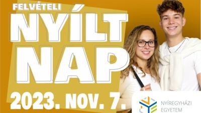 A Nyíregyházi Egyetem intézményvezetője és Tudományos Tanácsa tisztelettel meghívja Önt és munkatársait a Tudomány és Művészet Ünnepe a Nyíregyházi Egyetemen („Tudomány: Válaszok a globális kihívásokra”) című tudományos konferenciára. A rendezvény védnökei: a Magyar Tudományos Akadémia, a Kulturális és Innovációs Minisztérium, és az MTA DAB. Az ünnepi konferencia ideje: 2023. november 7. (kedd), 10.00 óra. Helyszíne: Nyíregyházi Egyetem, B épület, Nagyelőadó.